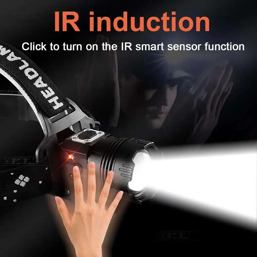 Новый ИК-датчик самый мощный светодиодный налобный фонарь XHP199 На...