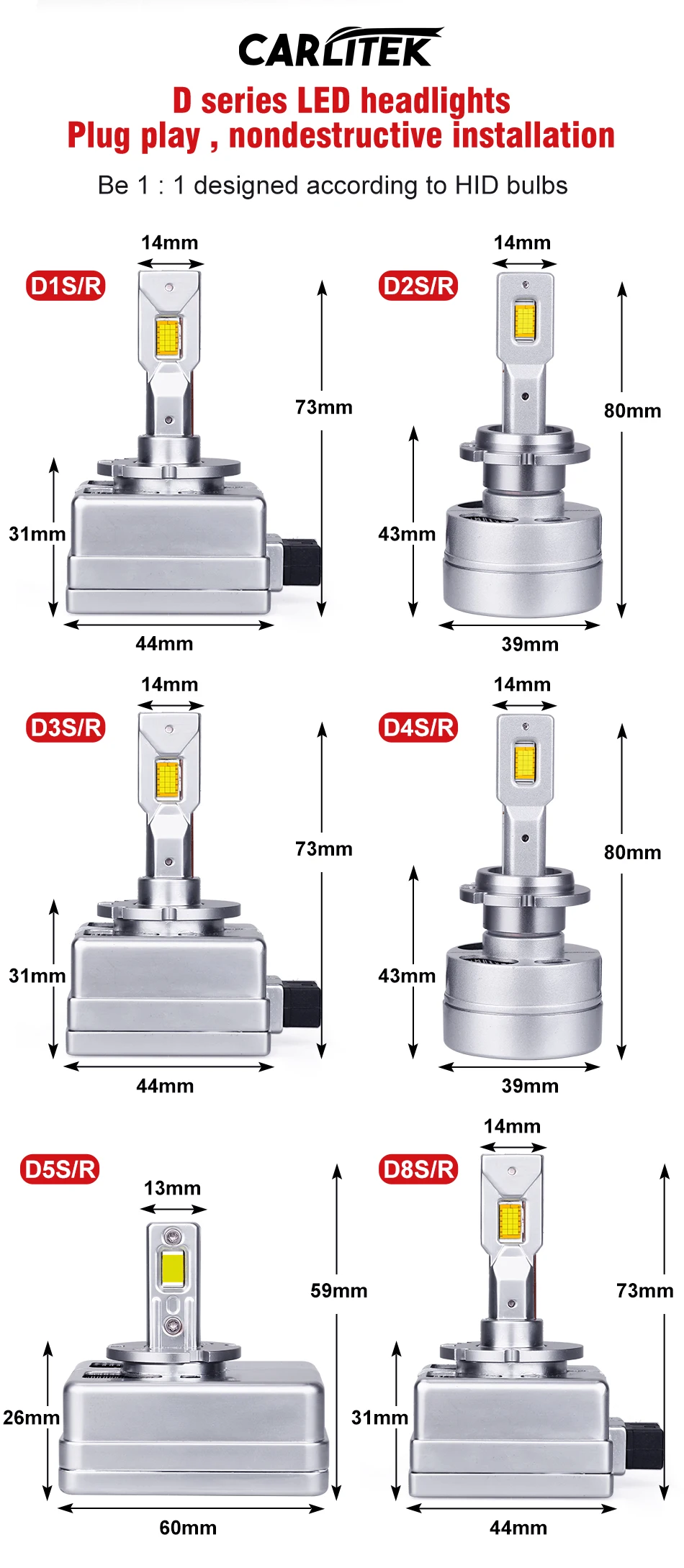 D5S светодиодная фара 6500 лм CSP чип D1S D2S D3S D4S D8S D1R D1C D...