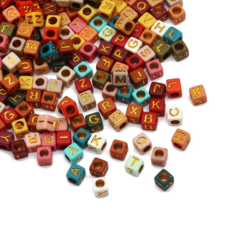 Квадратные акриловые бусины разных цветов 6 мм с золотыми буквами, ...
