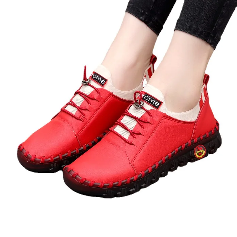 Кроссовки женские из коровьей кожи, на мягкой подошве, сшитые, на п...