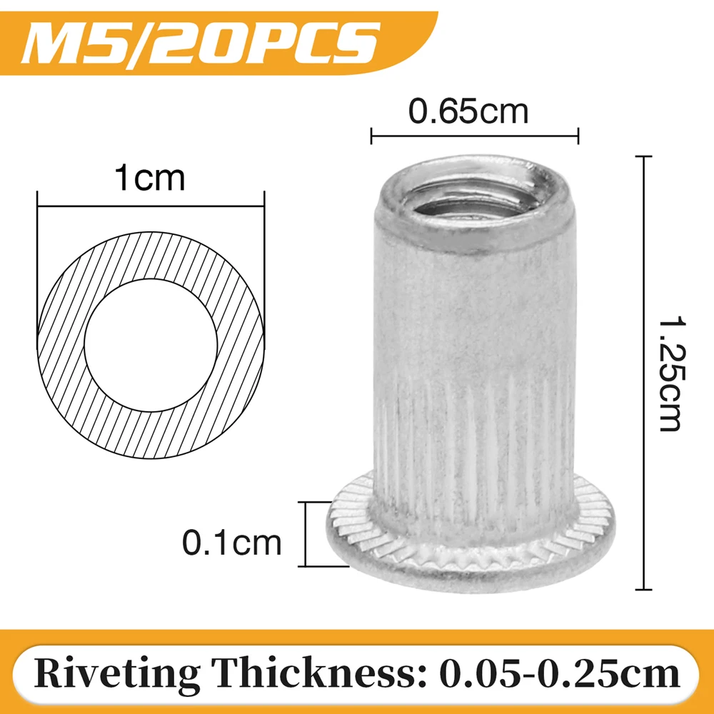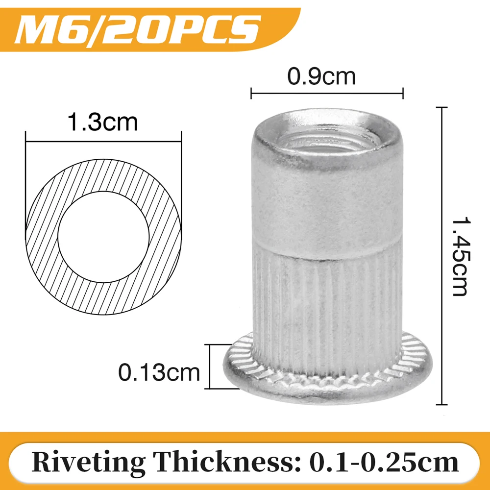 20 шт. заклепочные гайки из алюминиевого сплава M3 M4 M5 M6 M8 M10 плоская головка Резьбовая вставка гайка заклепка набор резьбовые гайки