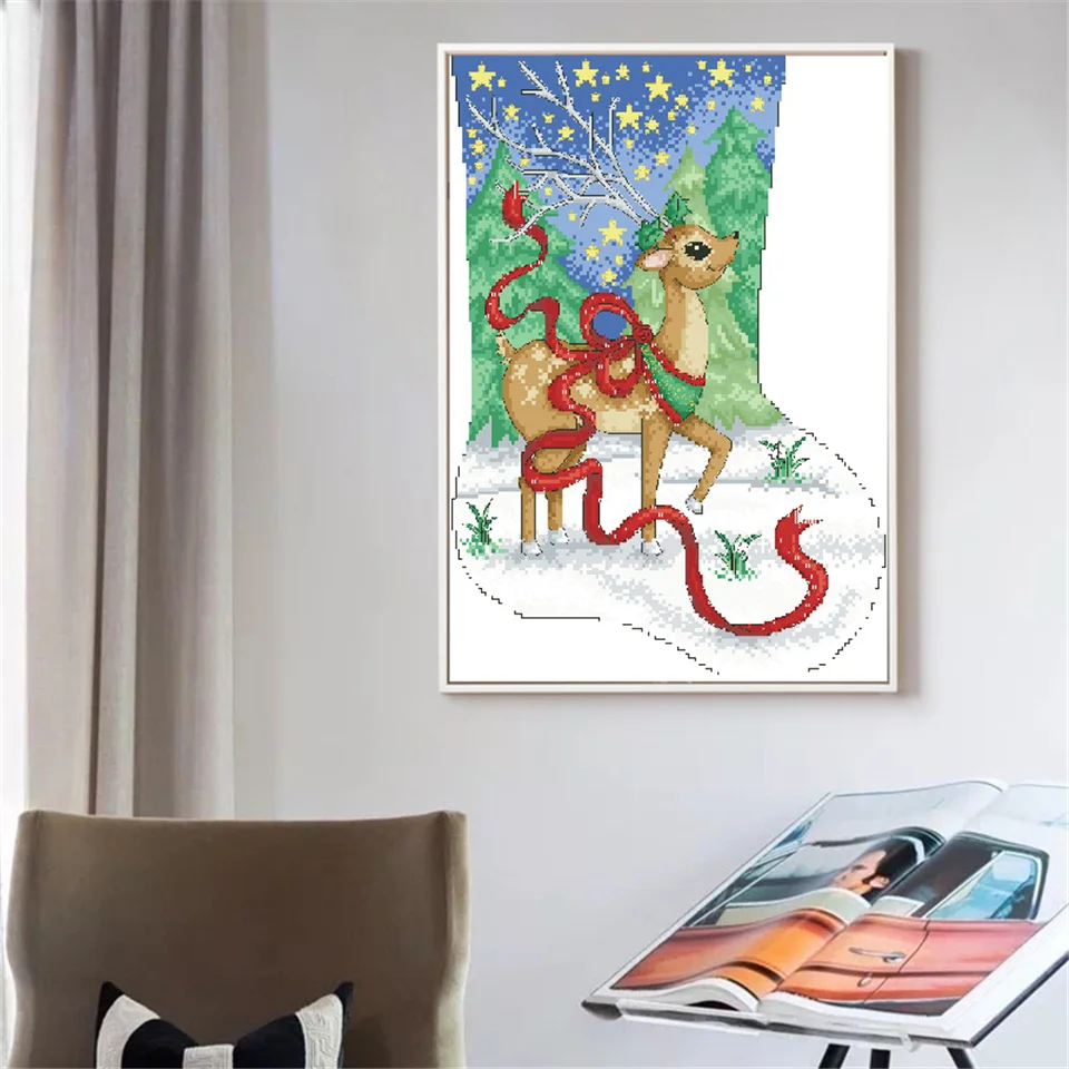 Рождественский чулок-олень штампованный вышивка крестиком узоры Наборы для вышивания предварительно напечатанный холст 11CT 14CT для рукоделия домашний декор