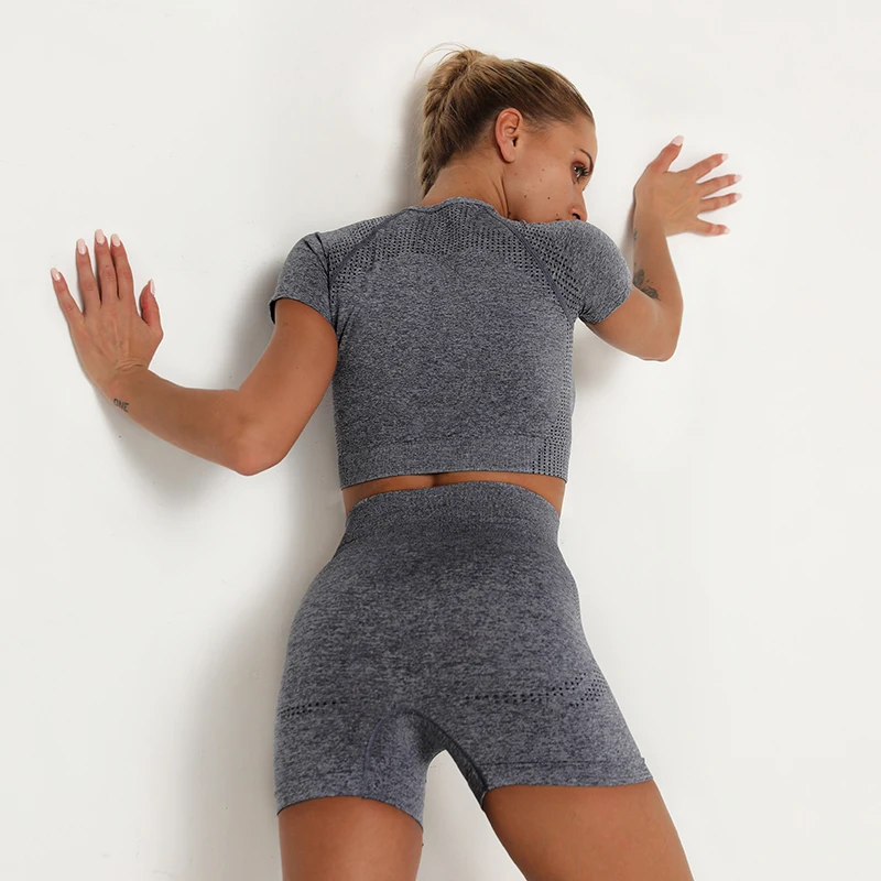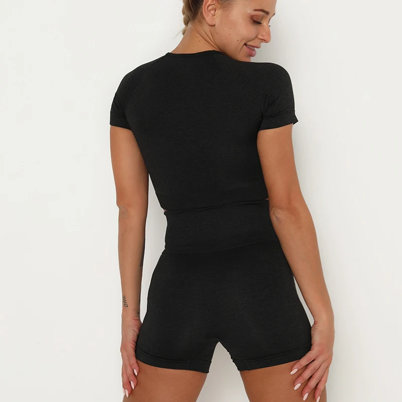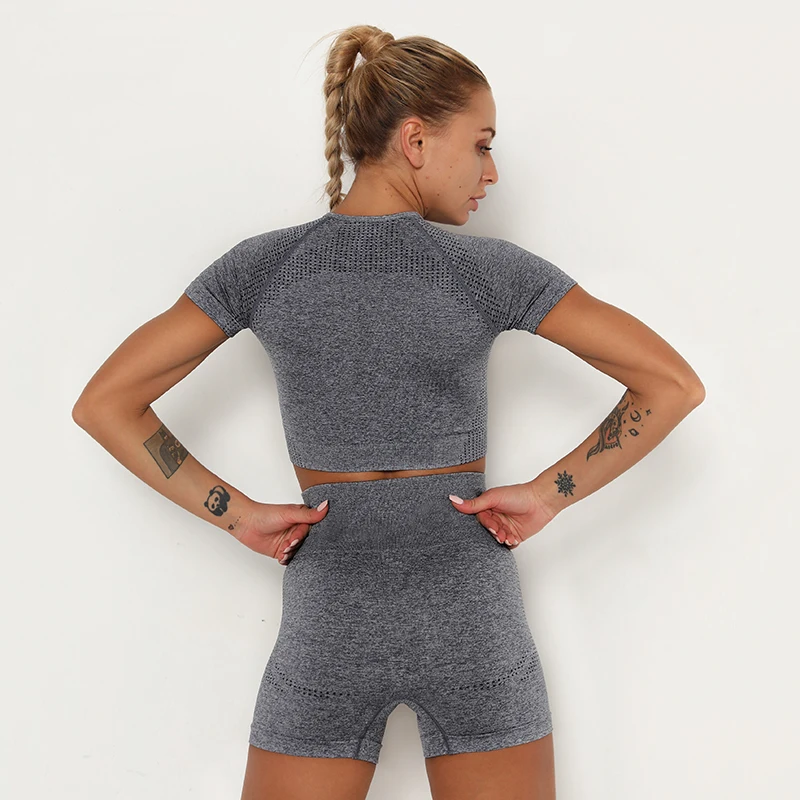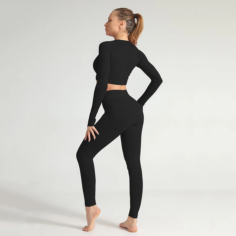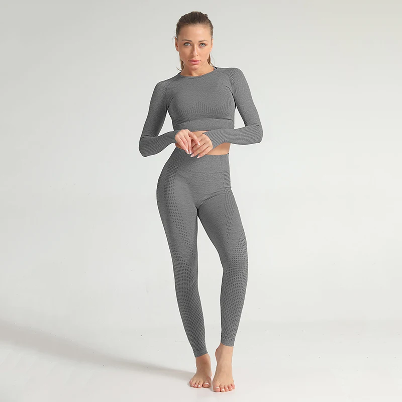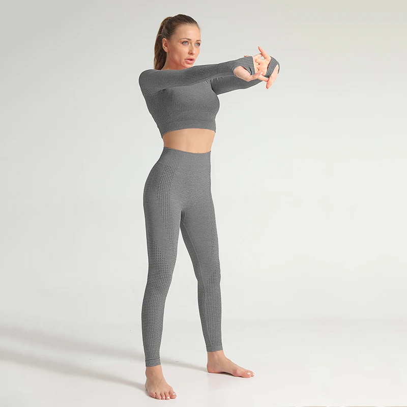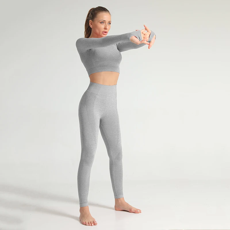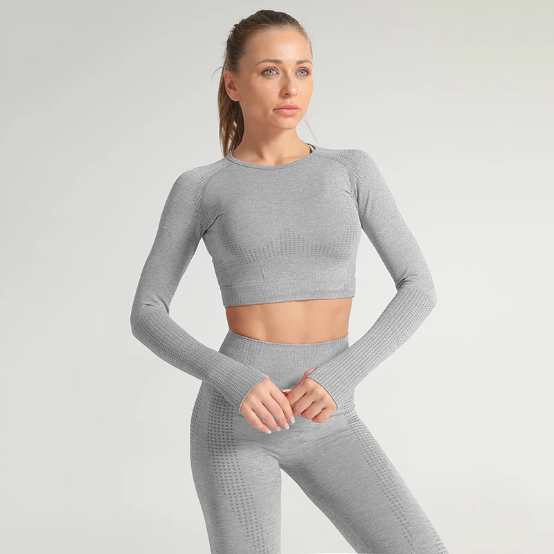 Костюм спортивный женский для фитнеса, укороченный топ с длинным рукавом, бесшовные леггинсы с высокой талией