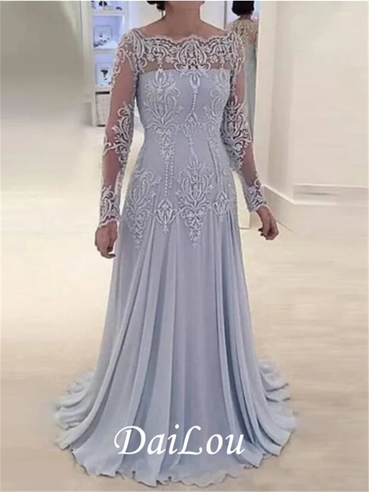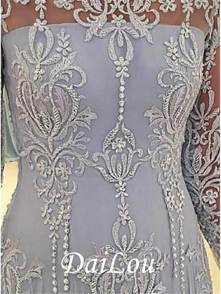 Платье ТРАПЕЦИЕВИДНОЕ для матери невесты, элегантное платье с фестонами и вырезом-шлейфом, полиэстер, с длинным рукавом, модель 2022