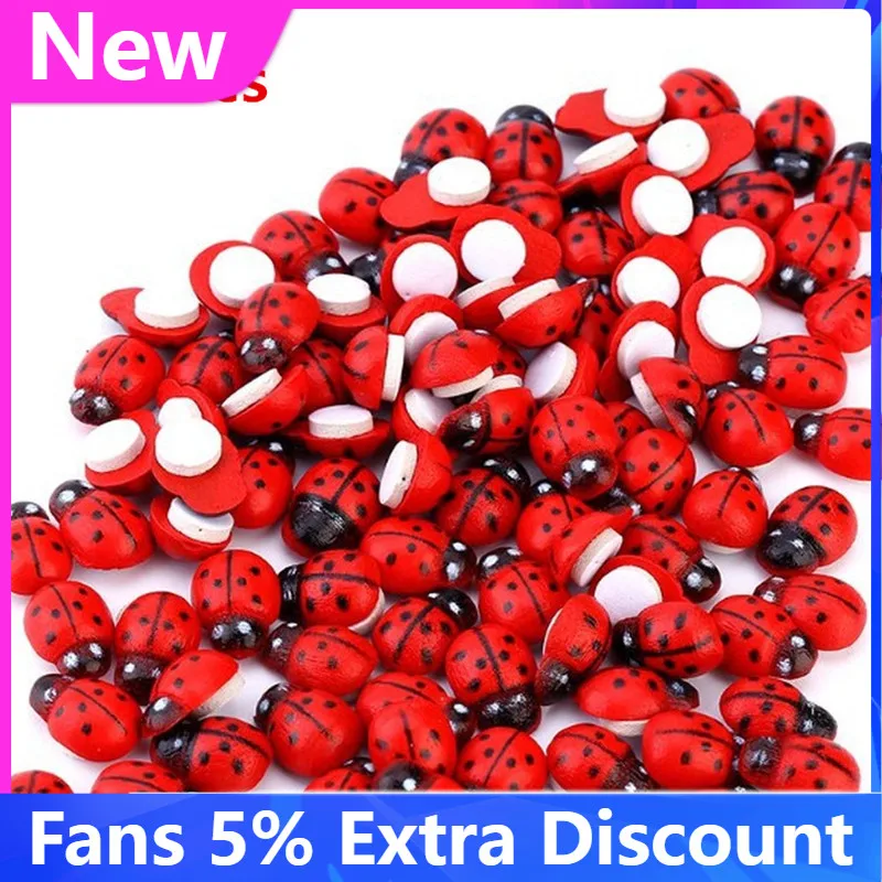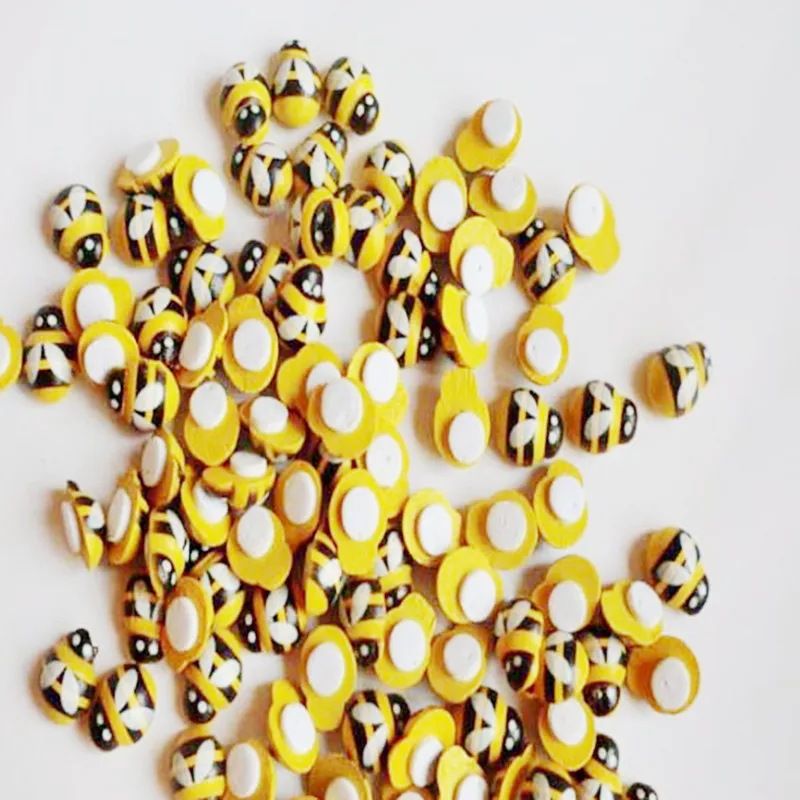 Деревянная мини-пчела, стикер божья коровка, скрапбукинг, пасхальное украшение, домашний декор для стен, день рождения, вечеринки, 100 шт.