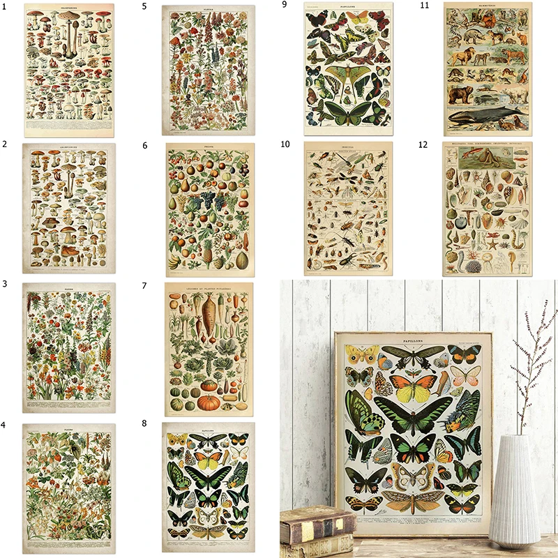 Винтажные плакаты с энциклопедией Адольфа миллота, плакаты с бабочк...