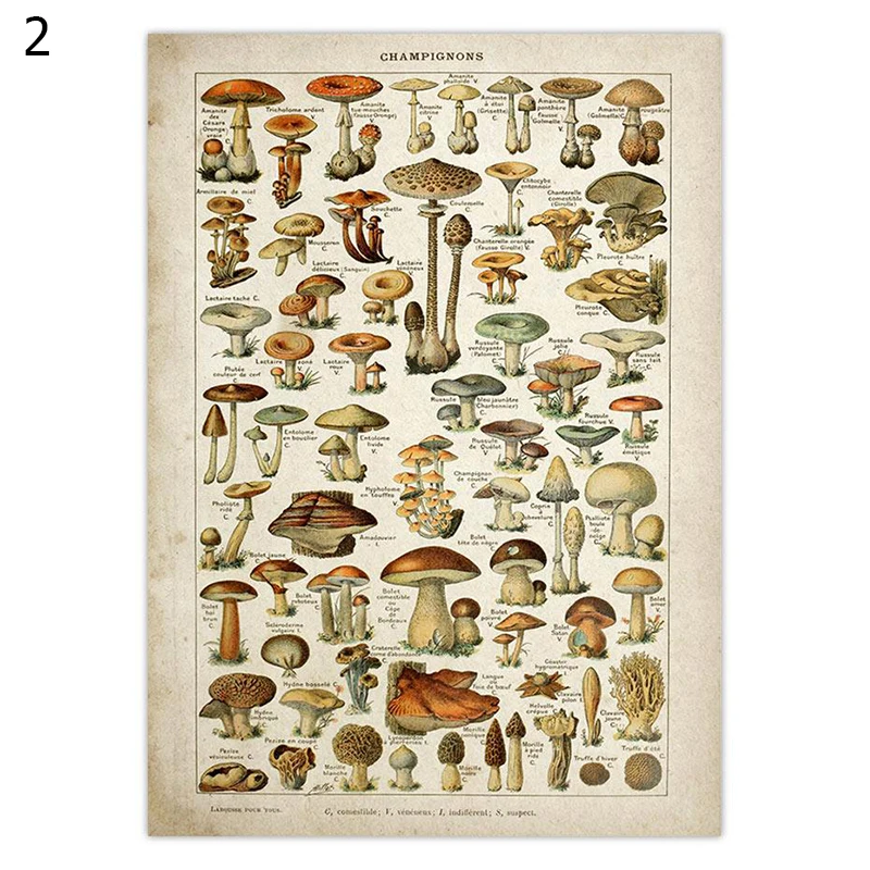 Античная растительными принтами Винтаж плакат с грибами на французс...