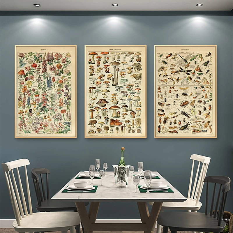 Винтажный стиль, холст, плакат, образцы насекомых, животные, картин...