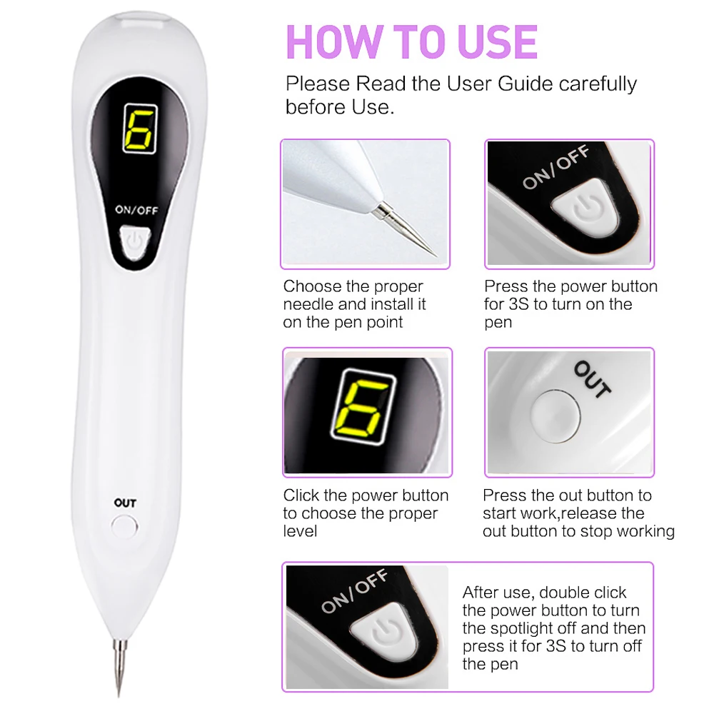 Не рекомендуется повторно использовать иглу, чтобы избежать инфекции. Вы можете купить иглы, кроме этой ручки для удаления родинок.