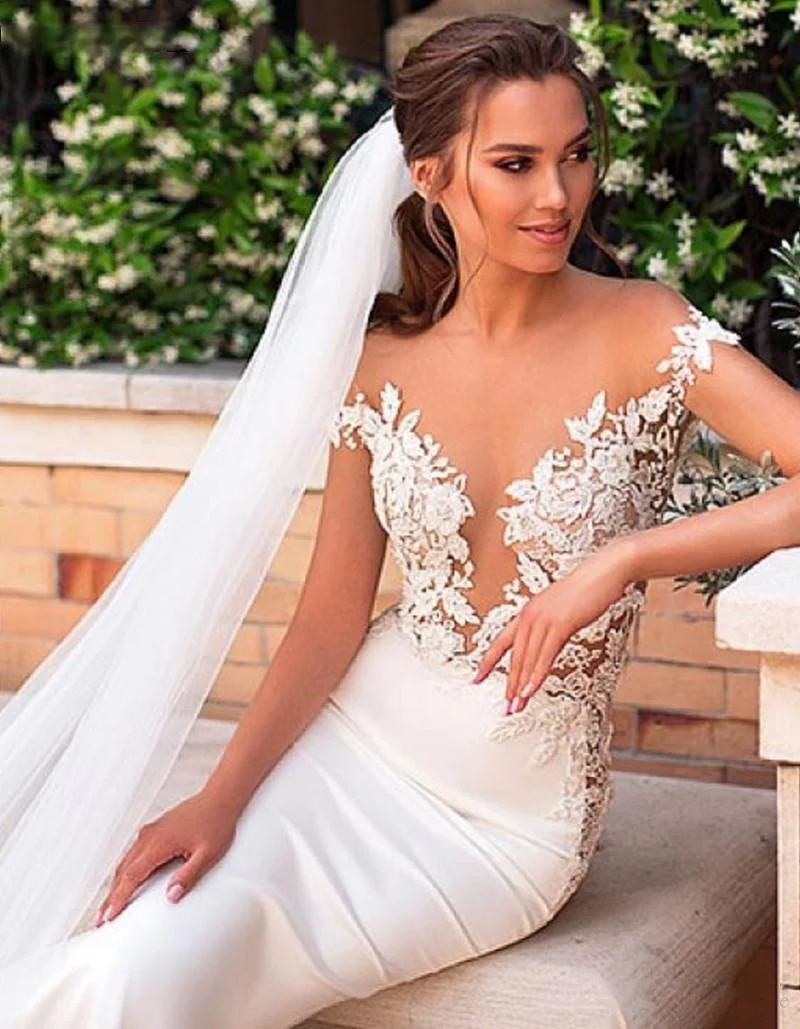 Кружевное свадебное платье с юбкой-годе 2021 атласная кепка рукава Vestido De Noiva кружевные богемные платья невесты с романтическими пуговицами