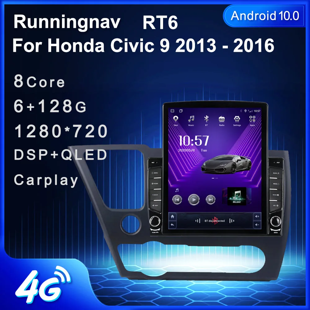 Автомагнитола Tesla, 9,7 дюйма, Android 10,1, для Honda Civic 9 2013-2016, мультимедийный видеоплеер, навигация GPS, RDS, без dvd