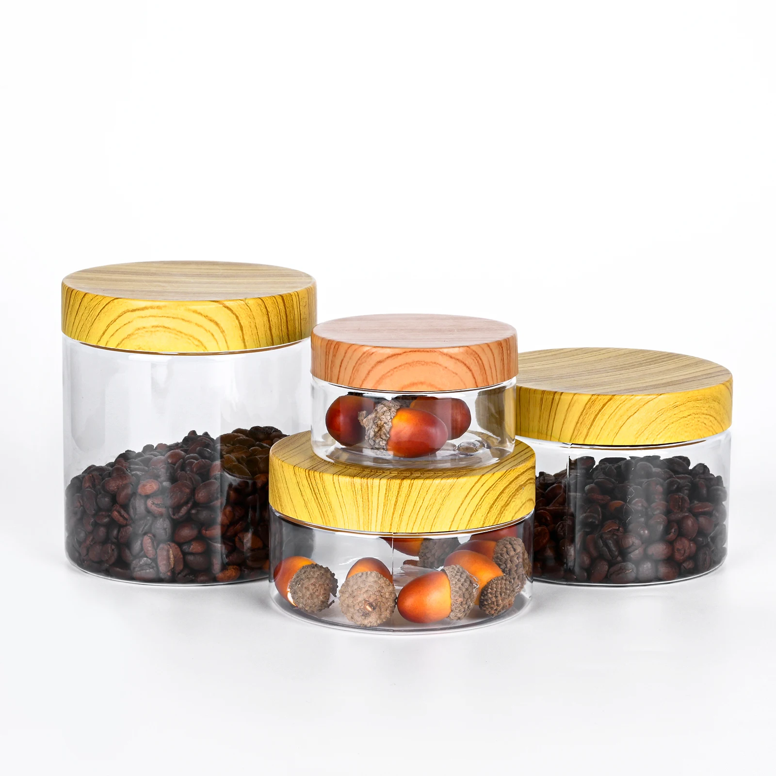 Новинка, пустые прозрачные банки для домашних животных, емкость 100 мл200 мл300 мл500 мл с пластиковыми деревянными крышками, емкость для хранения большой емкости, 1 шт.