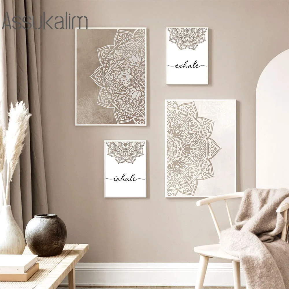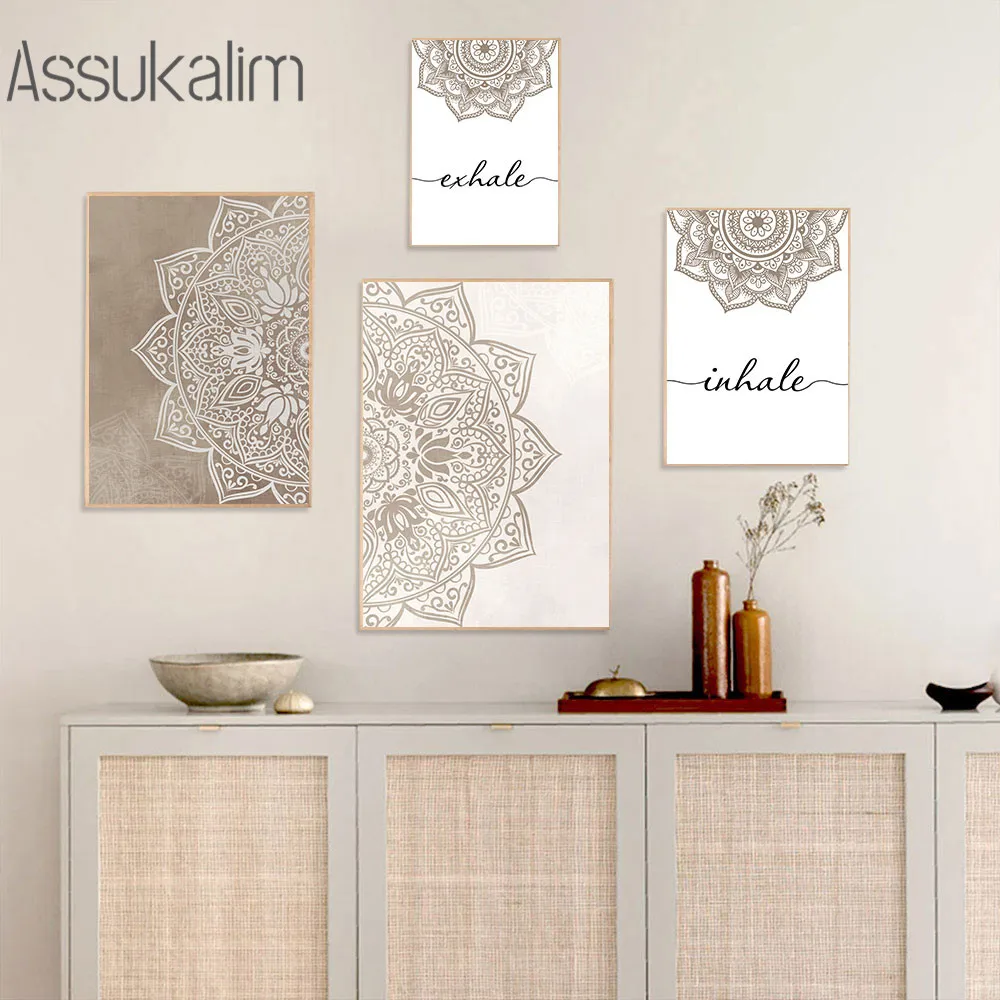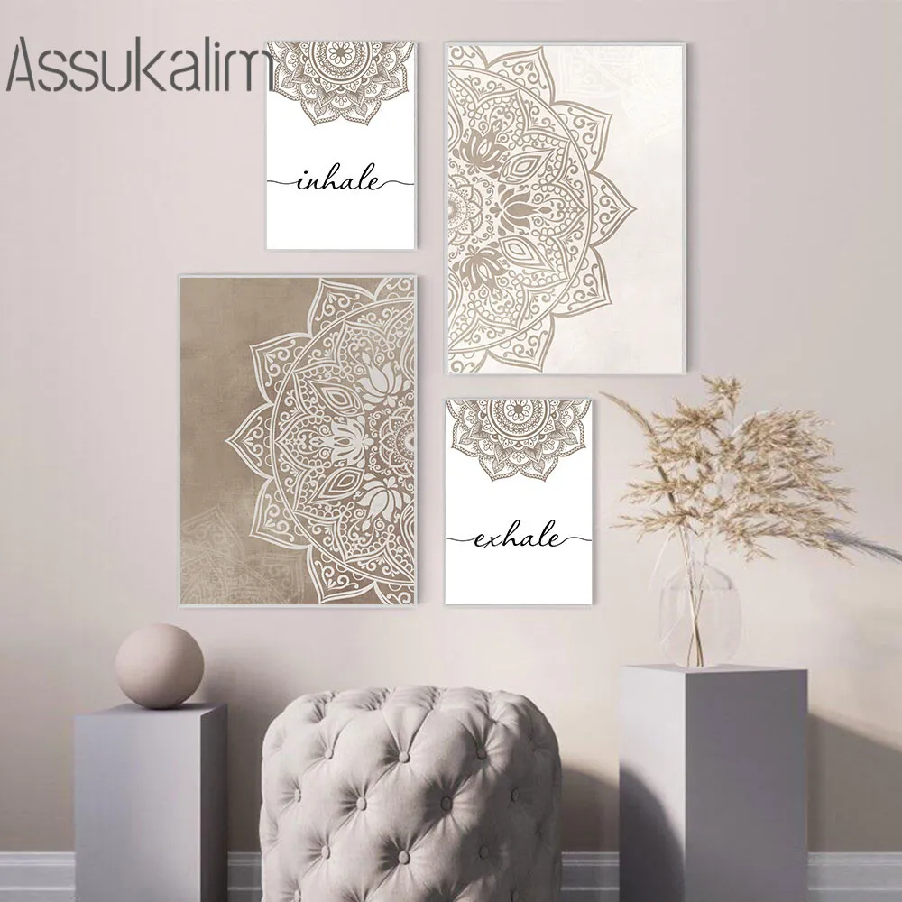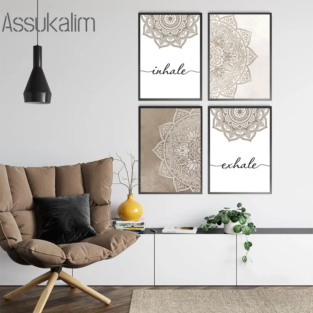 Абстрактные настенные художественные плакаты с винтажным узором, картина с цветами, Постер в стиле бохо, выдох, цитаты, картины, украшение для комнаты йоги