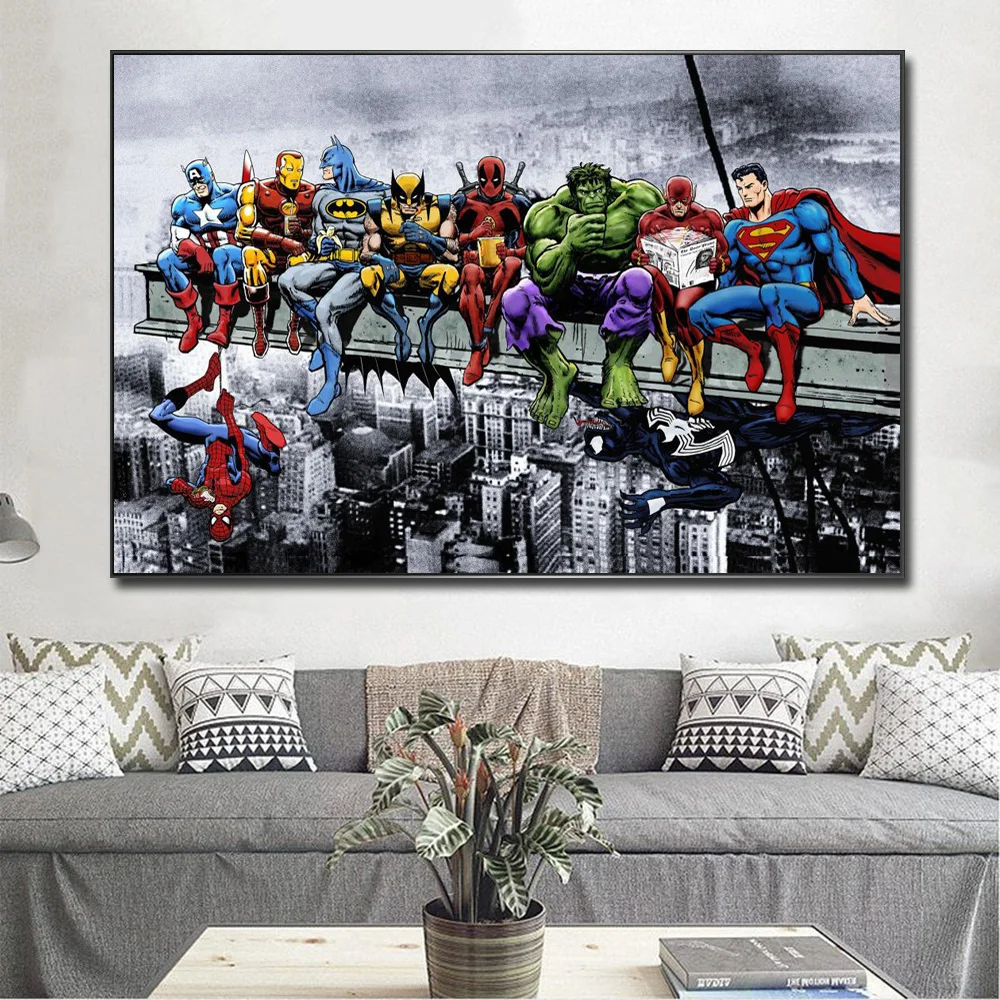 Халк Человек-паук Супергерои встреча смешная художественные плакаты и принты комикс Марвел мультфильм настенные картины на холсте Живопись Декор