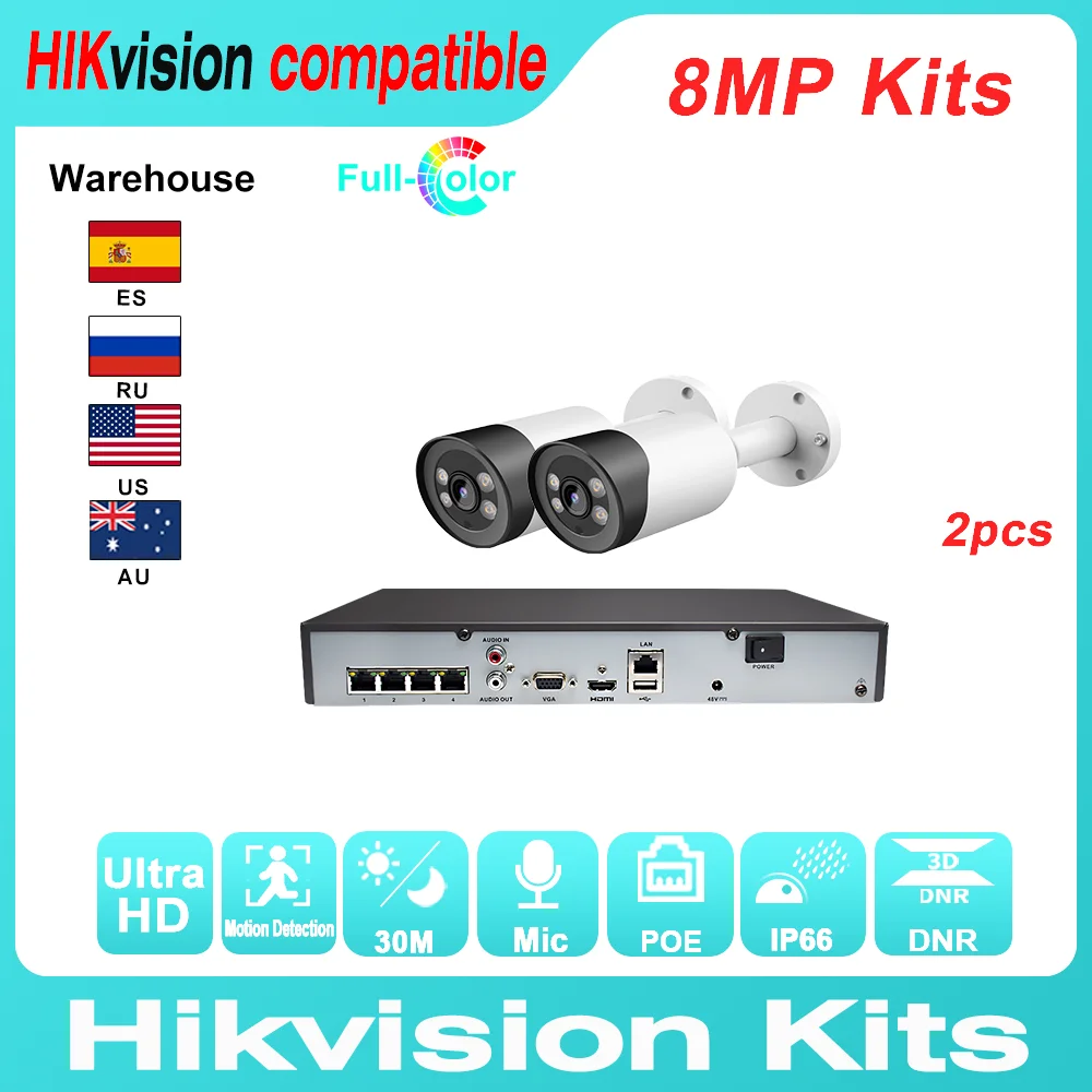 Hikvision совместимые наборы 2 шт. 8MP IP Bullet Camera ColorVu Hikvision оригинальные DS-7604NI-K14P DIY видеосистемы видеонаблюдения