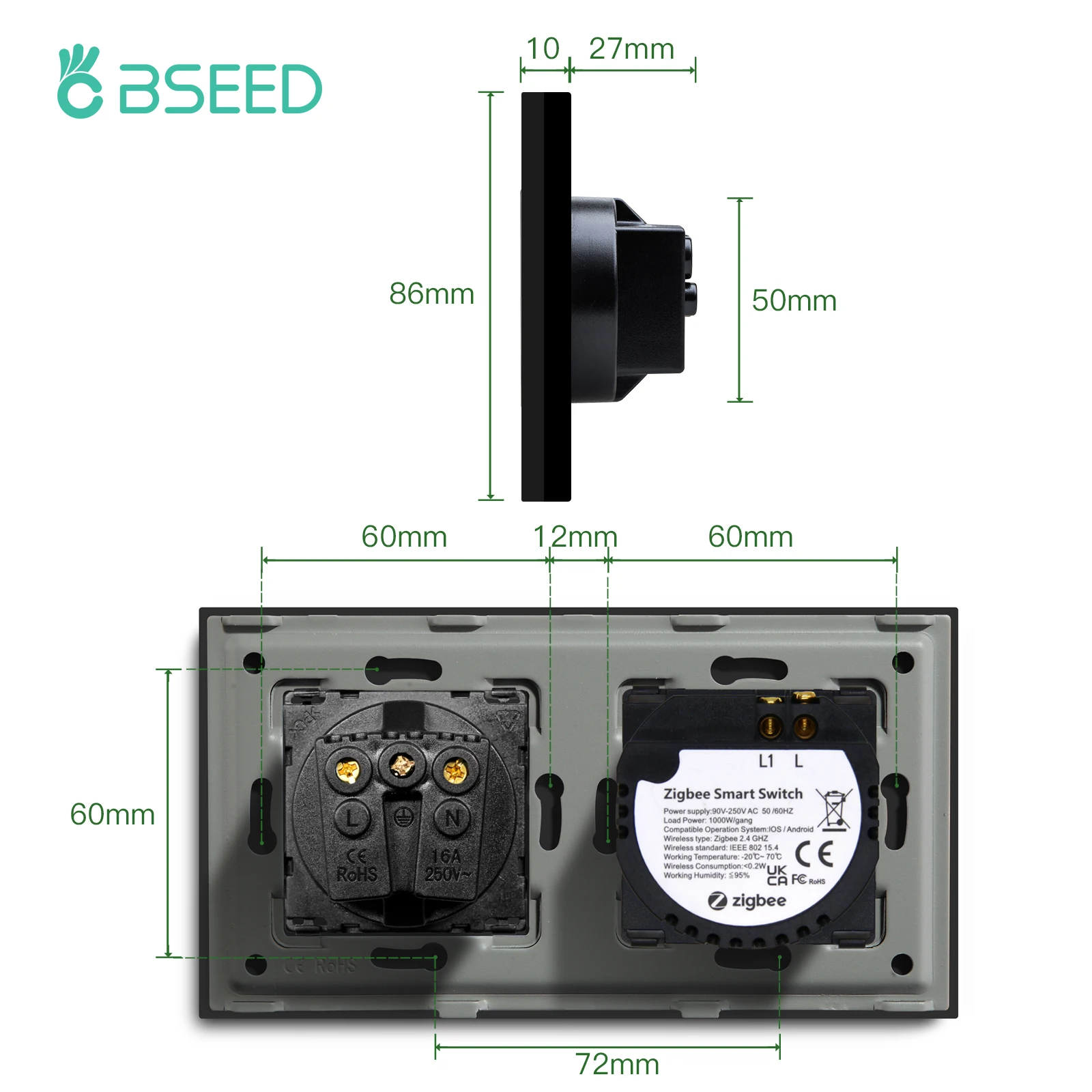 Настенный сенсорный выключатель BSEED Zigbee, Беспроводной Выключатель с 123 клавишами, умная розетка стандарта ЕС с поддержкой Google Alexa, требует шлюза