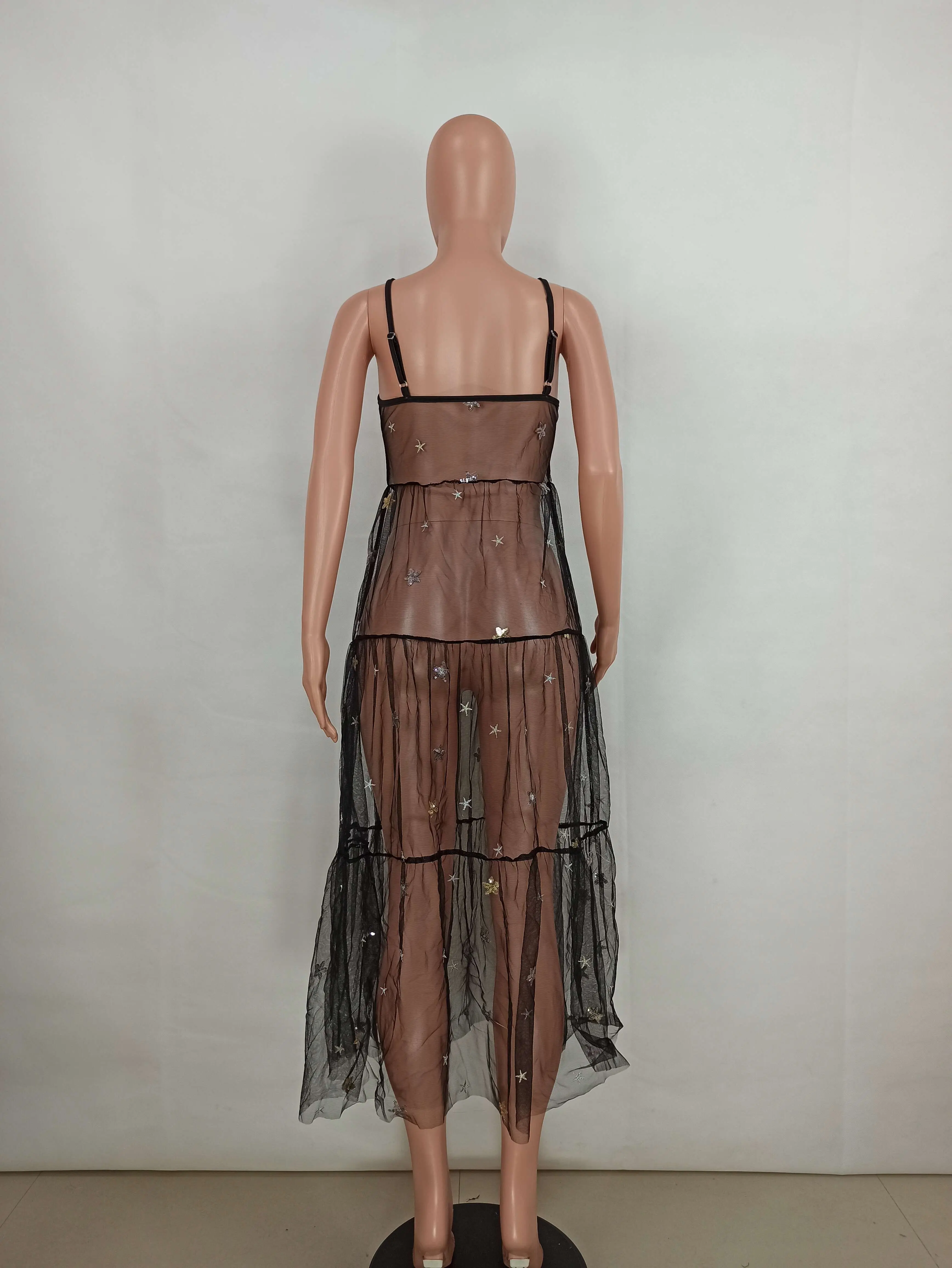 Женское Сетчатое Прозрачное платье CM.YAYA, Свободное длинное платье макси на бретелях, с круглым вырезом и блестками, пикантная одежда, Новая мода на лето 2021