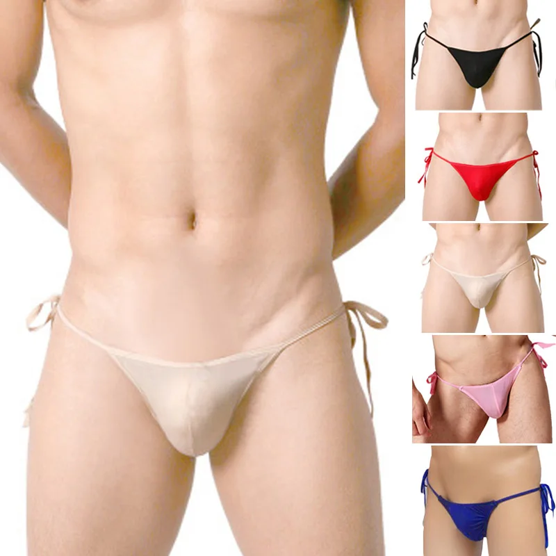 Стринги мужские, шелковые, однотонные, дышащие, тонкие, мужские пикантные стринги