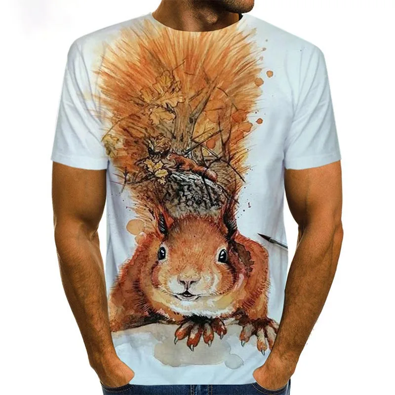 Мужская футболка с рисунком белки, футболка с 3D-принтом, футболка ...
