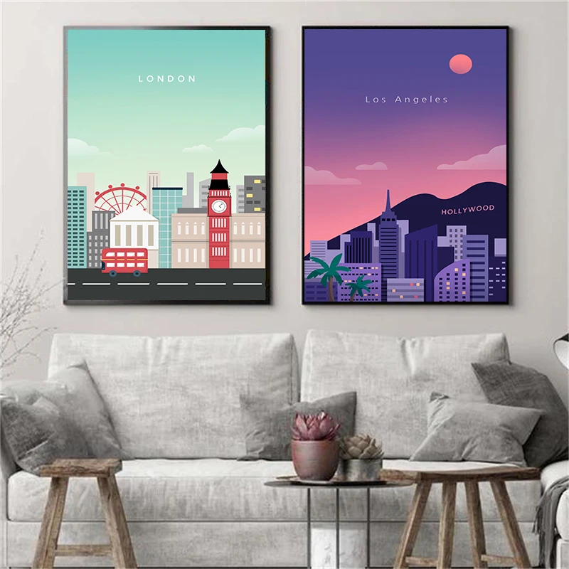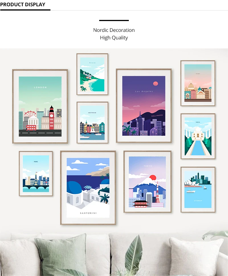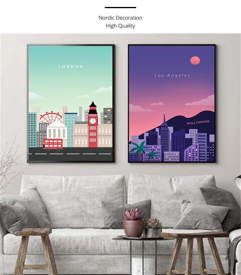 Мультяшные знаменитые постеры для путешествий с городским пейзажем, Марокко, Нью-Йорк, Париж, Картина на холсте, Скандинавская Настенная картина, картины, домашний декор