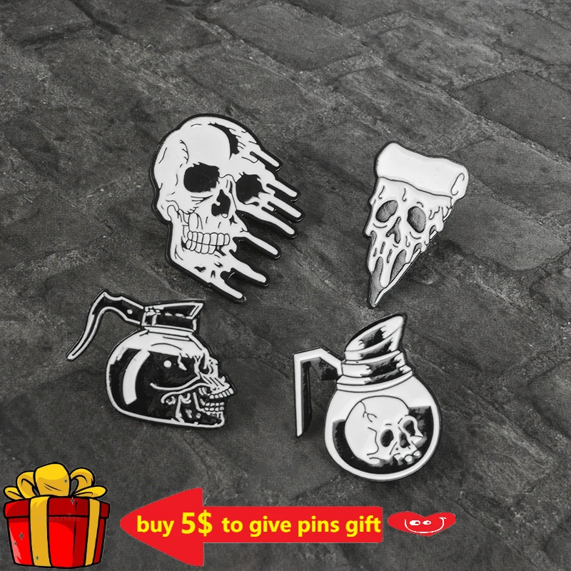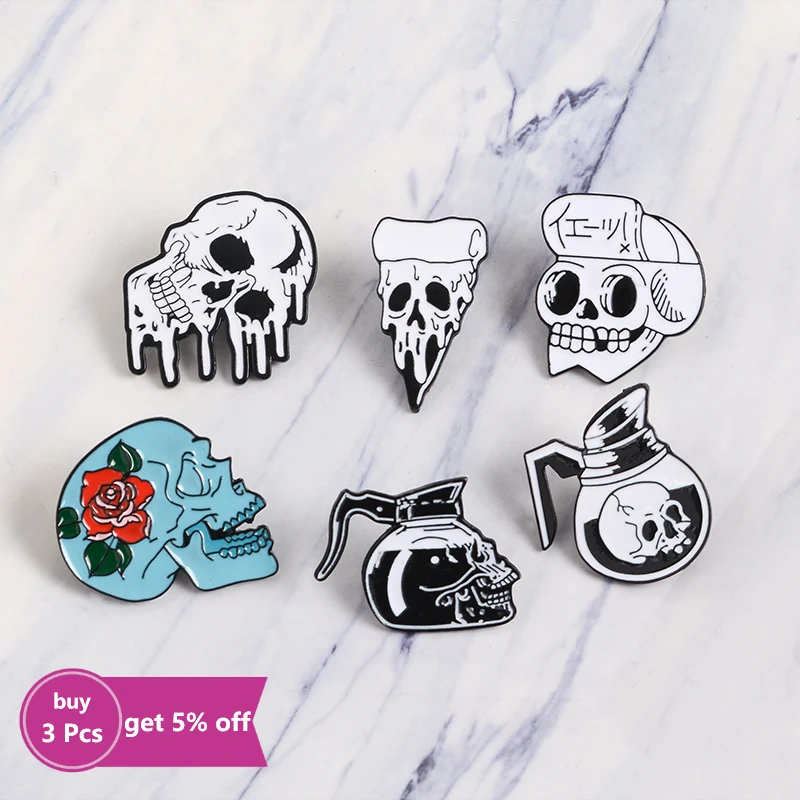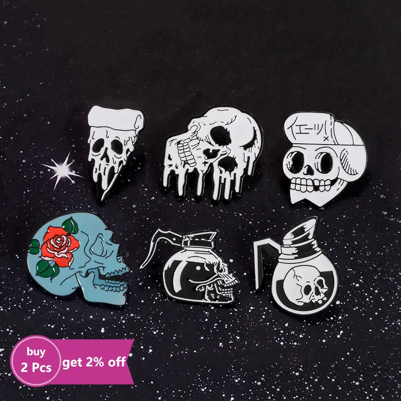 Эмалированные значки в виде черепа, розы, цветов, пиццы