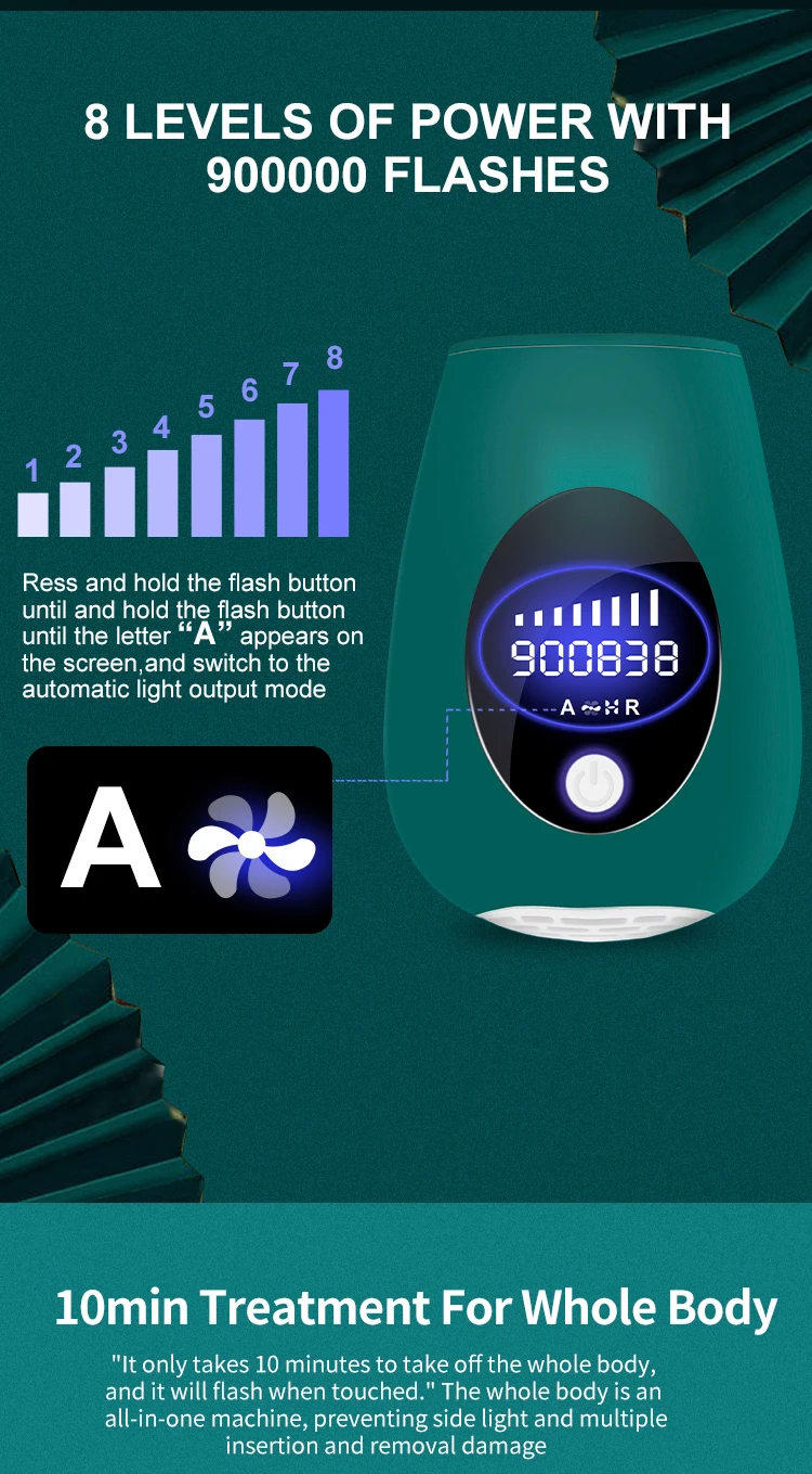 С 10 вспышками на одну часть тела, 600000 вспышек обеспечивает бесчисленные использования. Вы можете избежать использования других способов удаления волос.