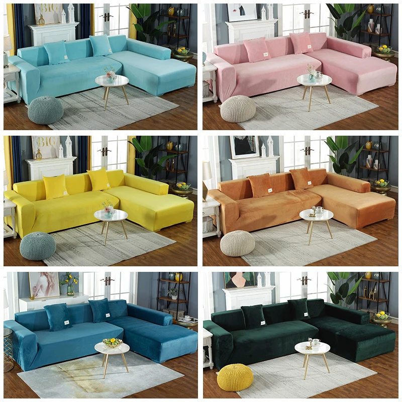 Бархатный Чехол для дивана на 1234 места, эластичный чехол для дивана L-образной формы, стрейч-чехол для угловой кушетки в гостиную