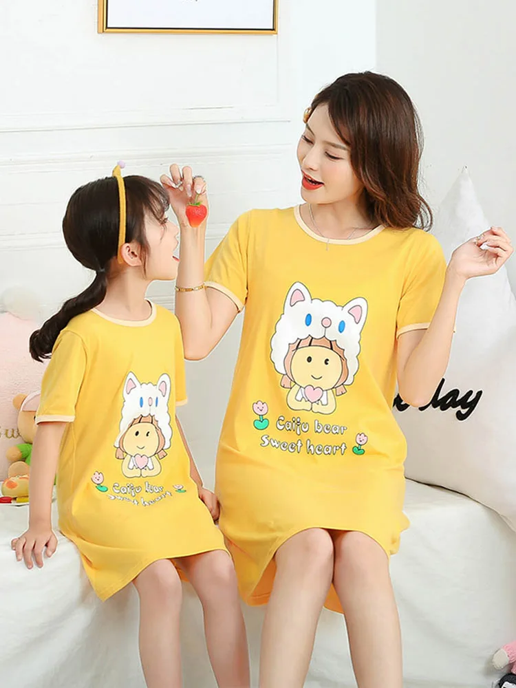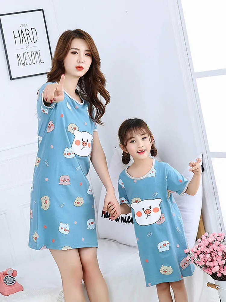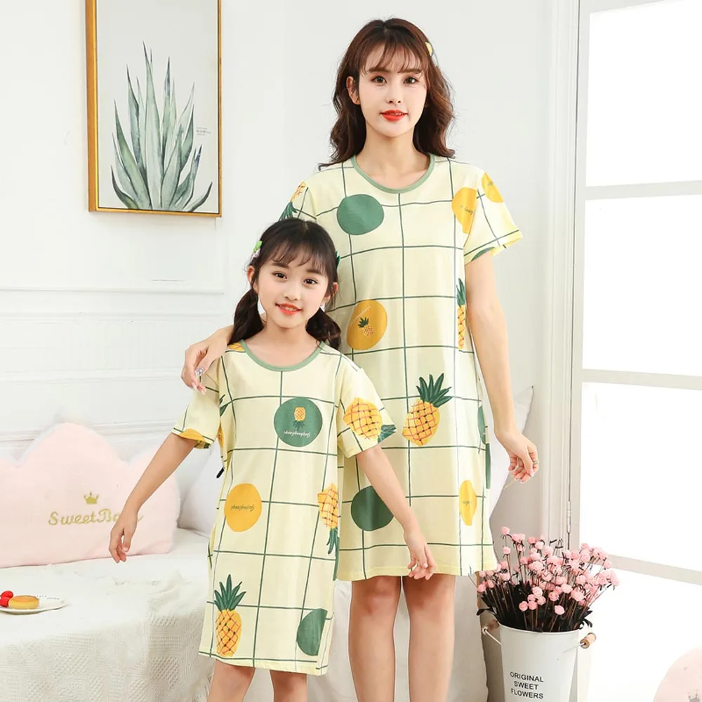 Хлопковая ночная рубашка; Пижама для девочек-подростков; Детская летняя ночная рубашка с рисунком; Домашняя одежда; Детская одежда для сна для маленьких девочек