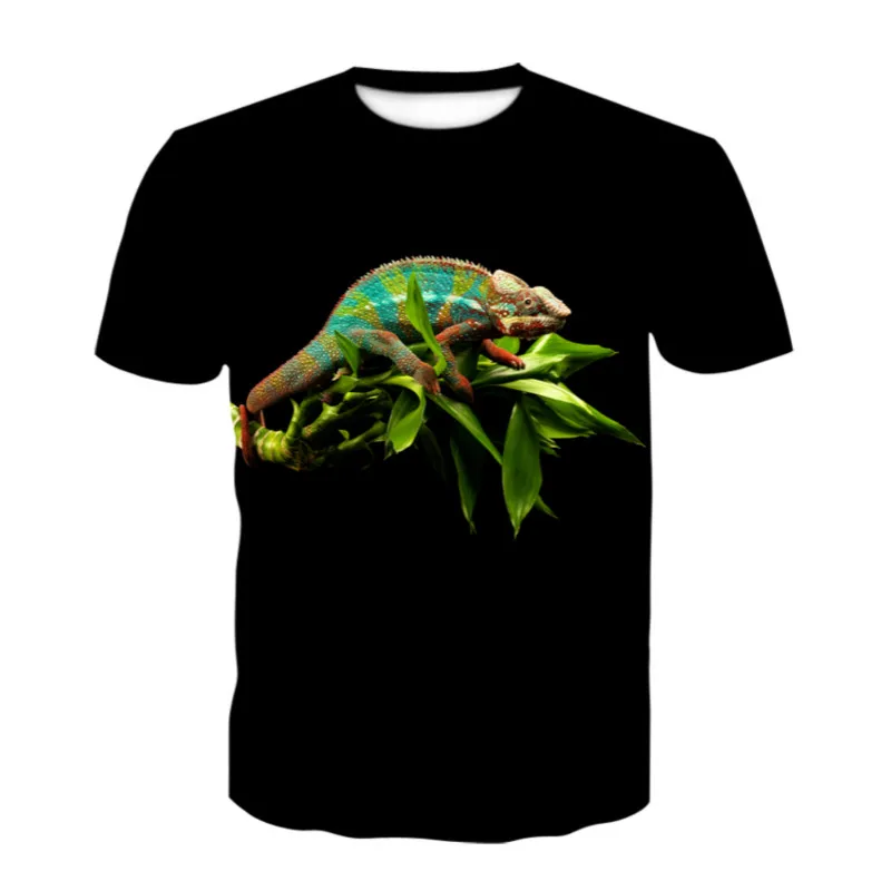 Мужская футболка с коротким рукавом, круглым вырезом и принтом змеи ящерицы