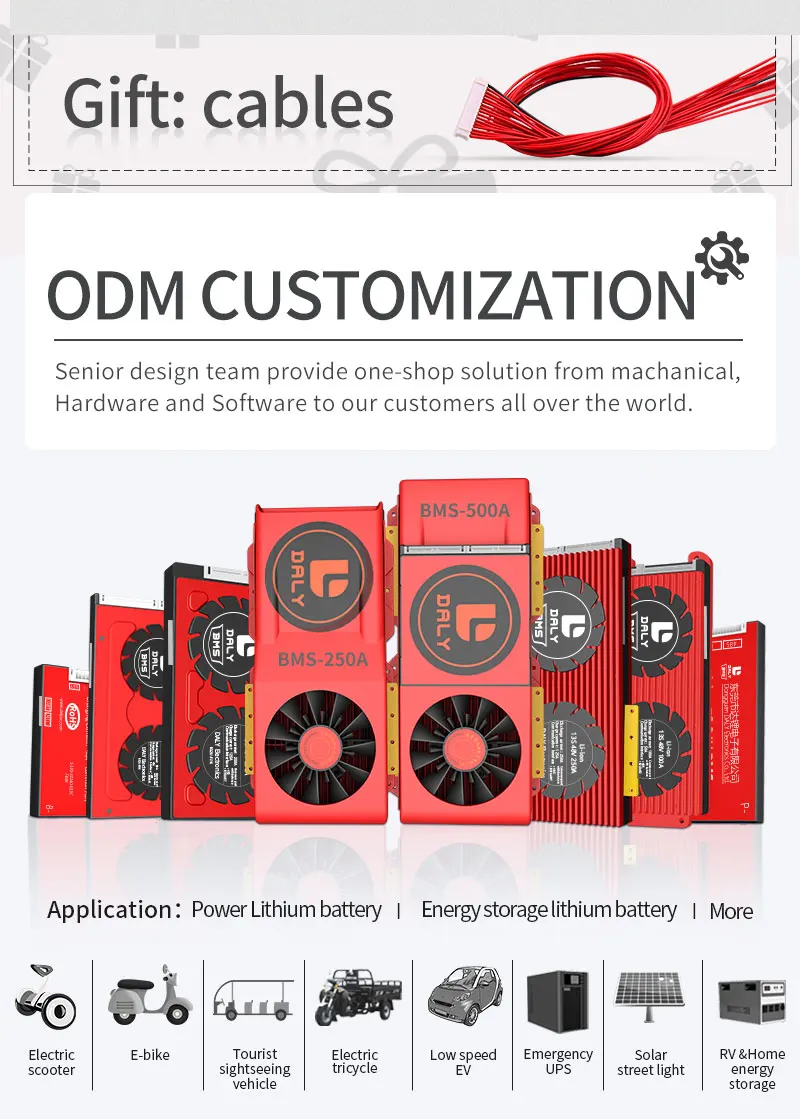 Особенности◆ UART: это нормальный продукт Daly. UART-универсальный асинхронный приемник/передатчик, он преобразует данные, передаваемые между последовательной связью и параллельной связью. Как чип для преобразования параллельных входных сигналов в последовательные Выходные сигналы, UART обычно интегрирован в другие интерфейсы связи.◆ RS485: RS-485 принимает сбалансированную передачу и дифференциальный прием, поэтому он может подавлять помехи в общем режиме. Применяется только для сбалансированных BMS.◆ Модуль Bluetooth: если вам нужна эта функция, пожалуйста, выберите модуль bluetooth, если вы не покупаете его, мы не отправим его вам.◆ Аксессуары, указанные ниже, нужно покупать отдельно.1. Кабель USB-UART 2. Кабель USB-RS485 3. Модуль Bluetooth 4. Панель дисплея питания (активация ключа) 5. Экран сенсорного управления bms1. DL7S 24V Smart BMS 30A 40A 60A bms может использоваться для 3S Li ion или LiFePO4 или аккумулятор лто упаковки. Заказчик может отрегулировать параметры перезарядки или переразряда параметров сидения и других параметров, если заказчик должен использовать аккумулятор того же типа.Внимание:Клиенту необходимо определить серию батарей, затем выбрать ту же серию BMS. Например, ваш аккумулятор 24S, вы должны выбрать 24S BMS, нельзя выбрать 20 или другой. Количество серий BMS фиксировано, не регулируется после отправки BMS.◆ Инструкции по управлению: дистанционное управление устройством мониторинга.◆ Значок транспортного средства: команда передачи данных отправки◆ Статистический отчет: собирайте информацию, клиент может контролировать емкость аккумулятора и другую информацию о тревоге.◆ Электронный забор: Предельный Диапазон настройки забора.◆ Информация об устройстве: Информация о параметрах устройства и т. д.Информацию на аккумуляторе можно проверить на компьютере, после чего вы сможете контролировать состояние аккумулятора в любое время. Который легко контролирует ваше устройство. Умная BMS упрощает нашу жизнь.