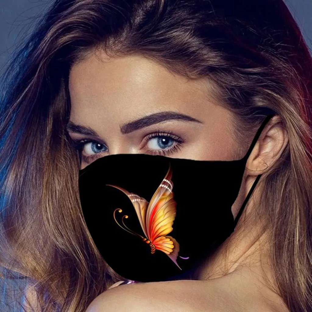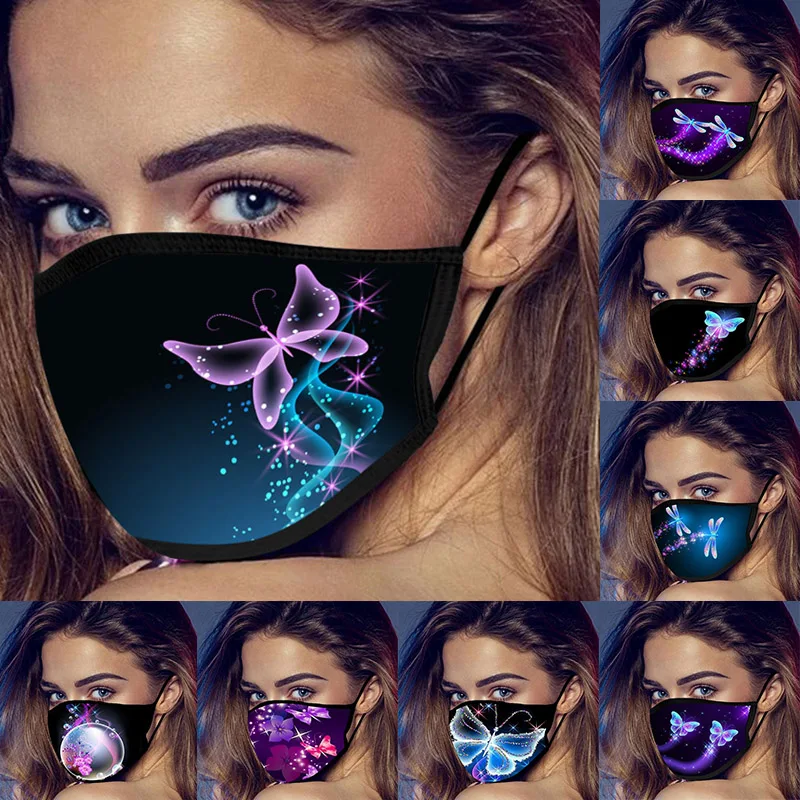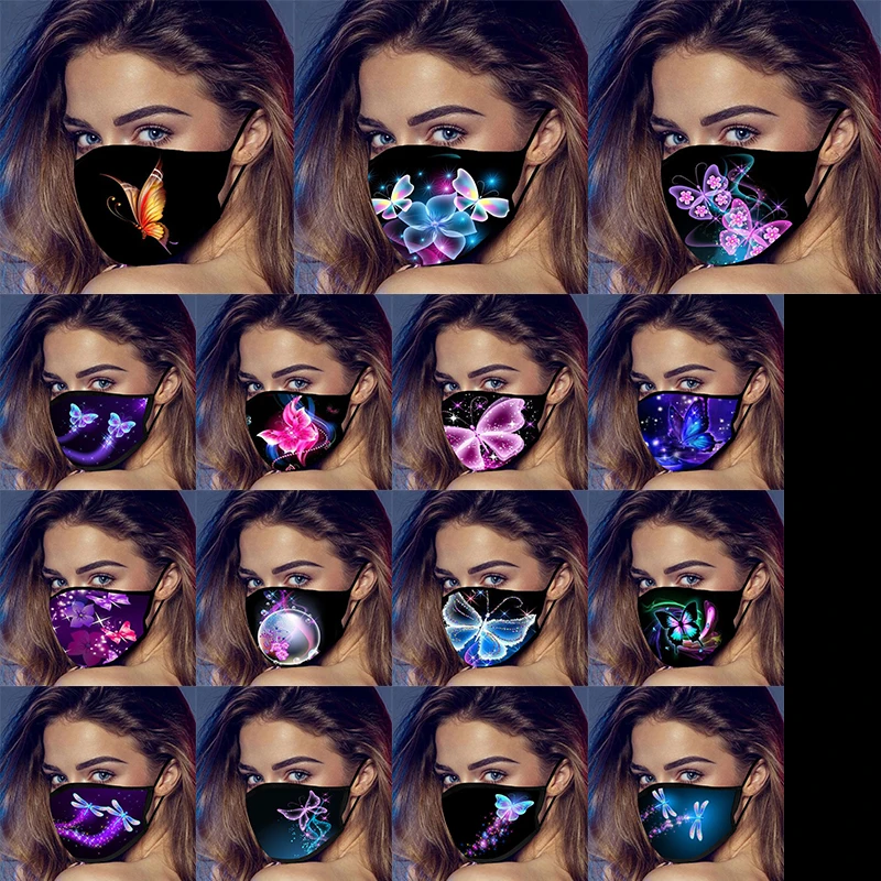 Дышащая Маска для лица унисекс, многоразовая моющаяся маска для взрослых с принтом бабочки, защитная маска, маска