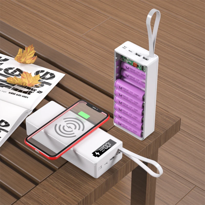 Съемный блок для хранения аккумуляторов 16*18650 PD QC3.0 USB 10 Вт быстрая Беспроводная зарядка чехол для внешнего аккумулятора 18650 Коробка для держателя аккумулятора