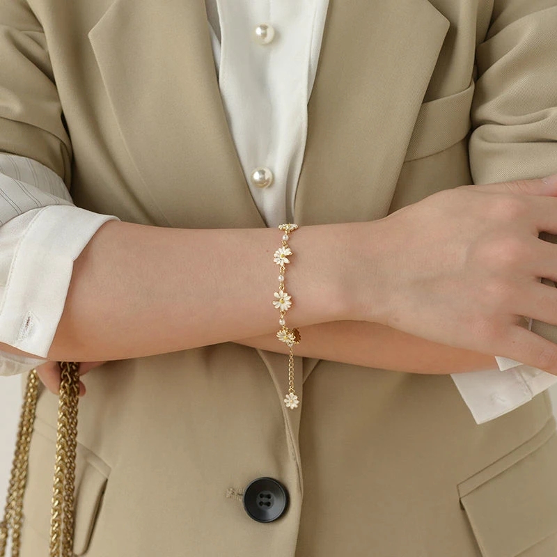 Прелестные модные туфли цветы ромашки браслеты Личность минималистский цветы жемчужные браслеты для женщин вечерние банкетные яркие ювелирные изделия, ювелирные изделия, подарки