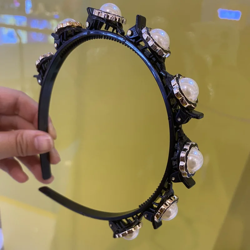 2021 Женская элегантная ободок заколка с жемчугом и зажимом, модные ободок с прищепками для девушек, черная ободок с заколками девочке ободок с зажимами для укладки, ободки с зажимами жемчуг ободок для волос с зажим
