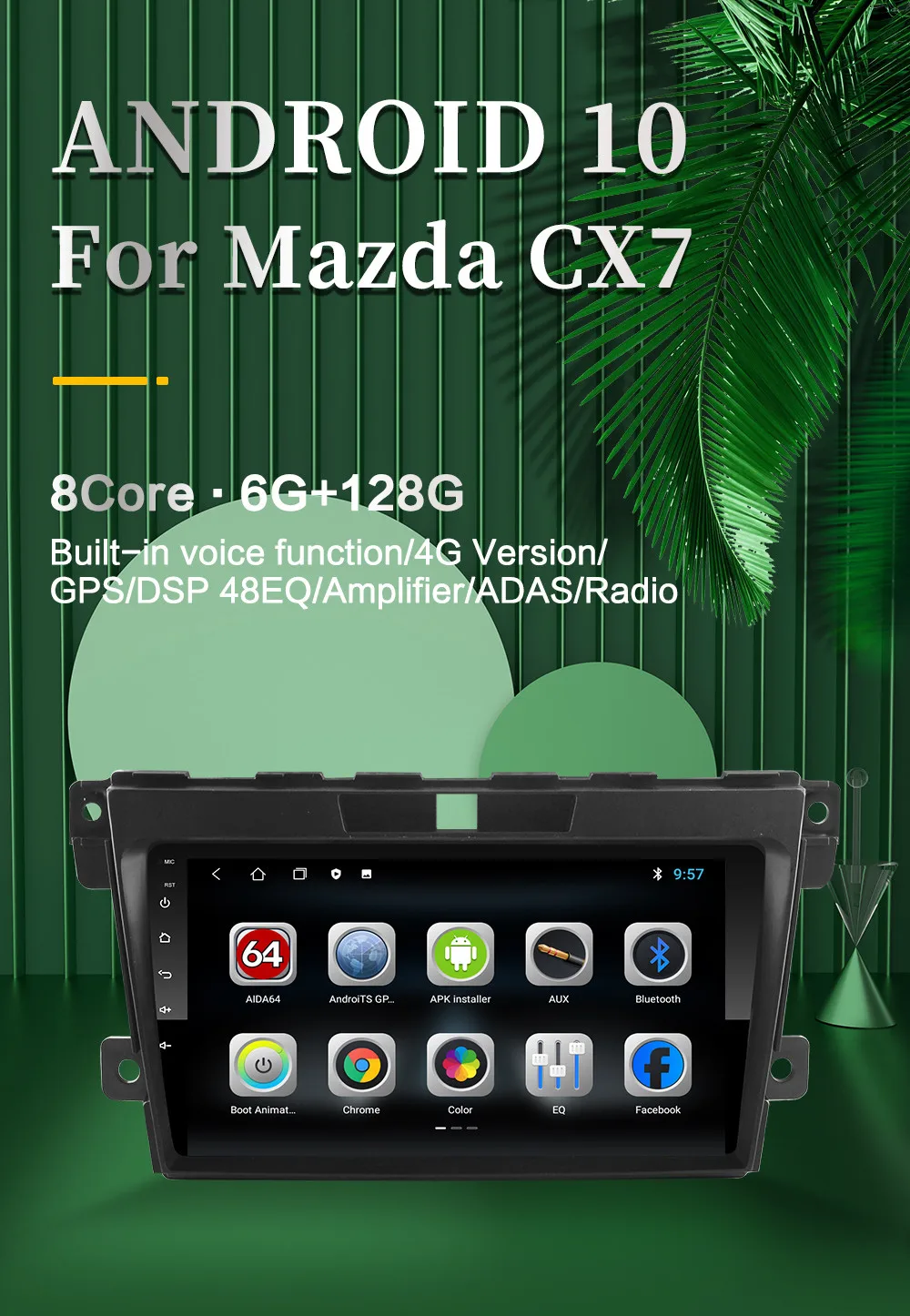 Автомагнитола 2DIN, Android 10, GPS-навигация, WiFi, CarPlay, мультимедийный плеер для Mazda CX-7 CX7 2008-2015, DSP, RDS, IPS, без DVD