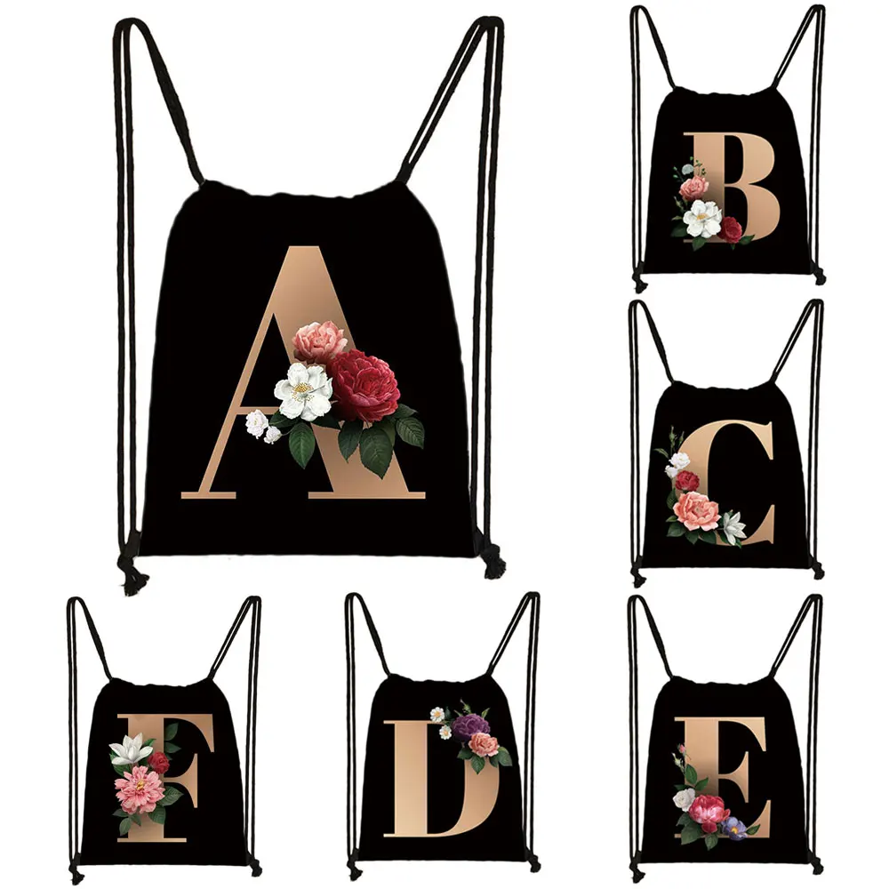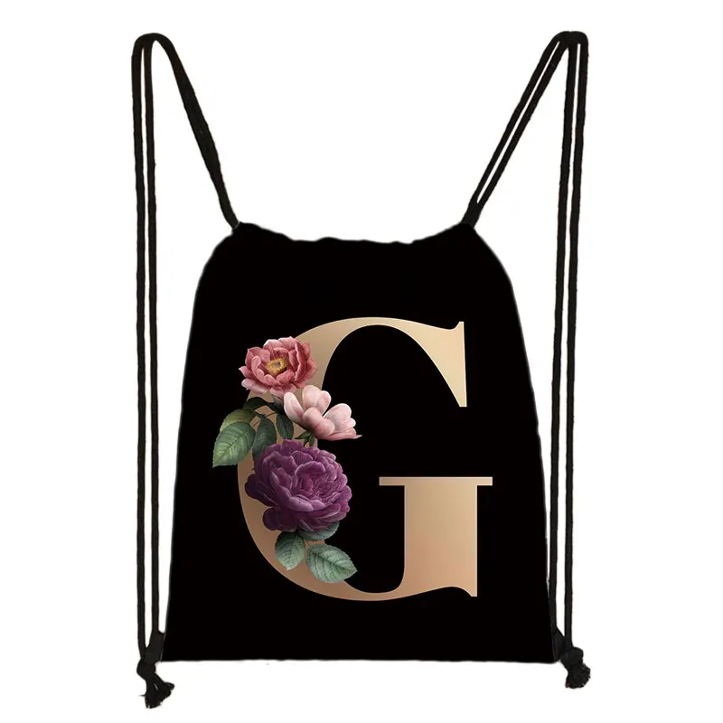 Сумка на шнурке для девочек, дорожный школьный ранец с 26 инициалам...