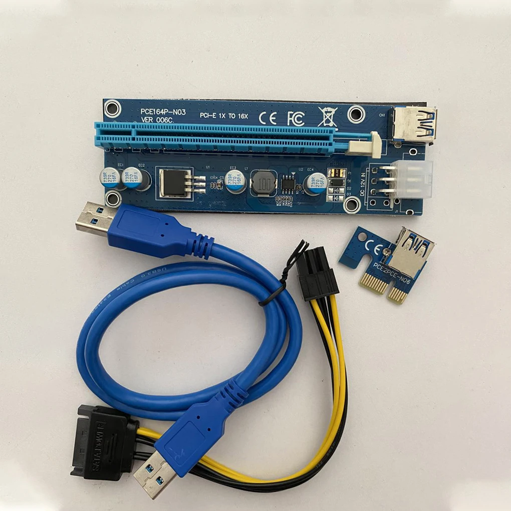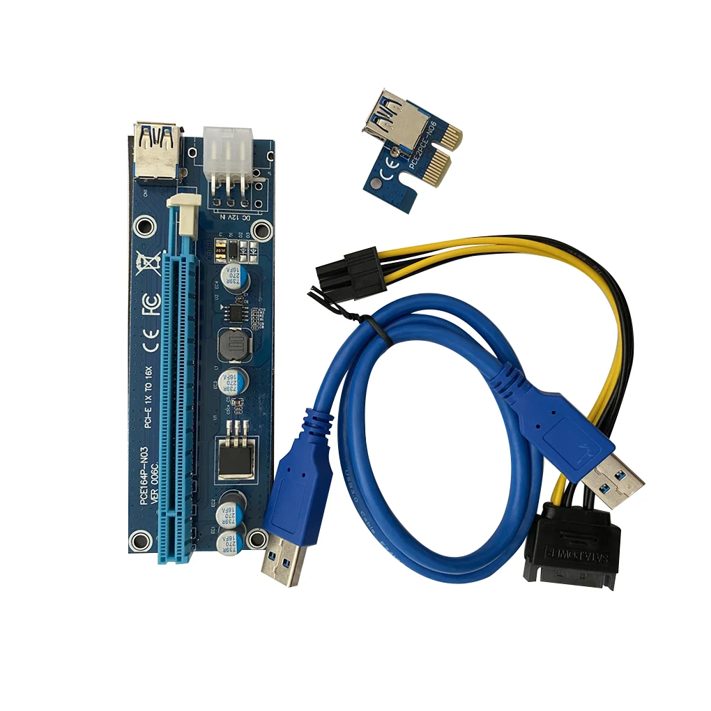 Райзер VER006C PCIe 1x на 16x Express Riser Card Pci-e, 60 см, кабель USB 3,0, SATA на 6 контактов, для майнинга BTC