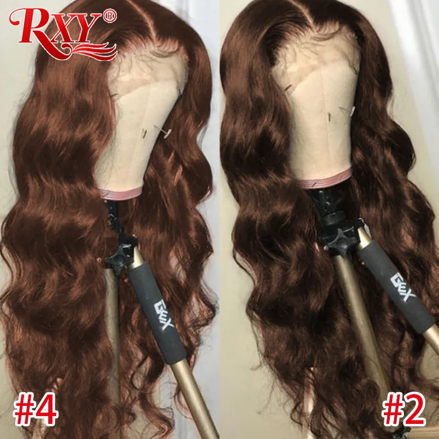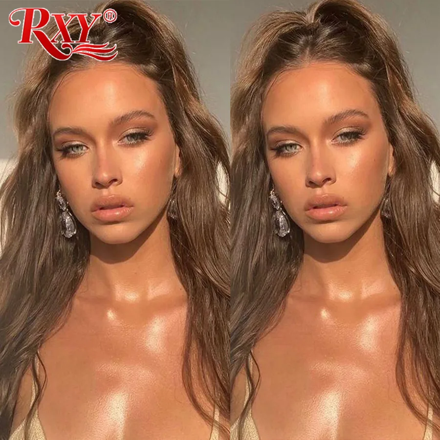 Коричневые парики RXY #4 #2, волнистые парики на сетке спереди, прозрачные парики на сетке, парик на сетке с T-образной частью, парики из человеческих волос для женщин, человеческие волосы