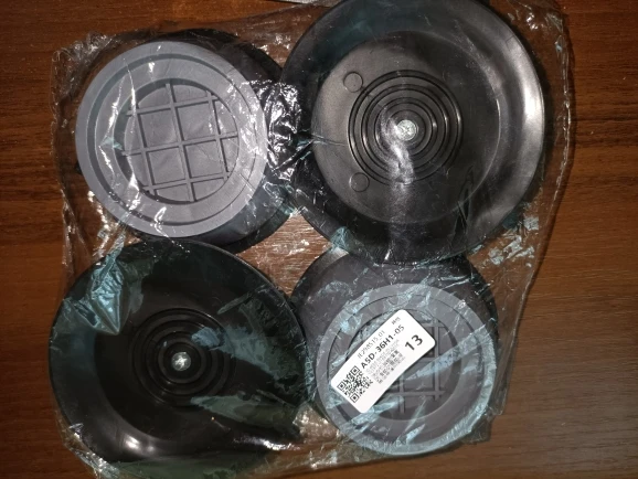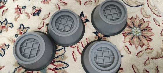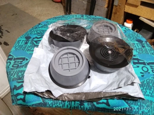 Обыкновенные пластмассовые подставки под стиральную машину. Никакой регулировки по высоте. Внизу типа присоска, но привинчена металлическим саморезом снизу. Так что вполне ожидаемо, что этот винт своей шляпкой будет царапать кафель или пол. Никакой антивибрационной проклалки тоже нет. Обычный пластик и всё. Учтите это! Рекомендовать как антивибрационный товар не могу. Здесь продавец наврал. Заказ был получен на краю географии Украины через 17 дней после оплаты на Алиэкспресс. Заказ