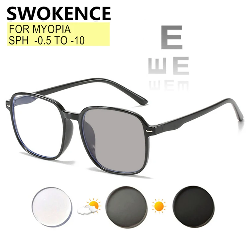 Фотохромные Анти Blue Ray близорукость очки Для женщин мужчин негабаритных квадратной оправе очки для близоруких по рецепту-0,5 до-10 F515