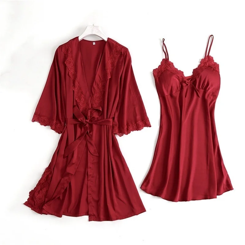 100% новый и высокое качествоТкань: искусственный шелкРазмер: S M L XLУпаковка: 2 шт./компл. (1 ночная рубашка + 1 короткая ночная рубашка)