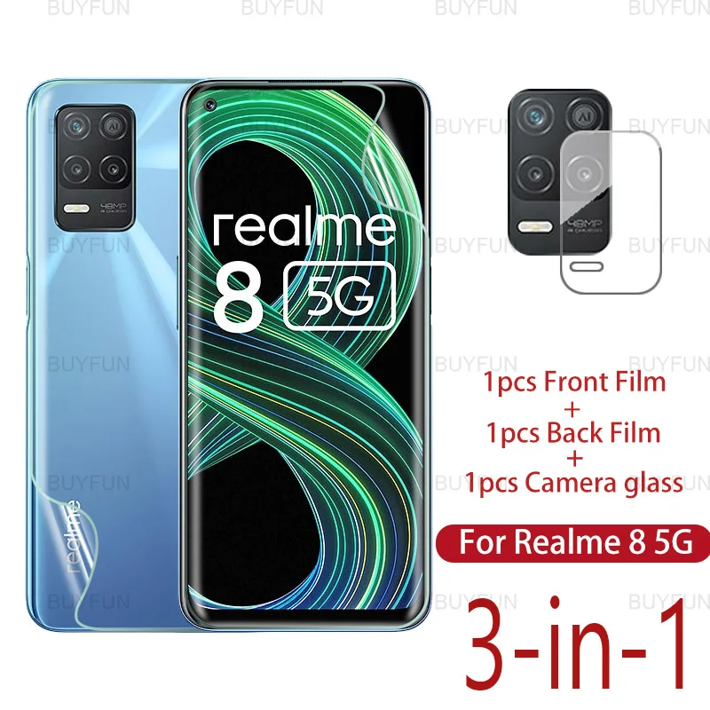 Гидрогелевая пленка 3 в 1 для OPPO Realme 8 5G 6,5 дюйма, Защитная мягкая пленка для передней и задней панели Realme Realmy Realmi 8 pro, стекло для объектива