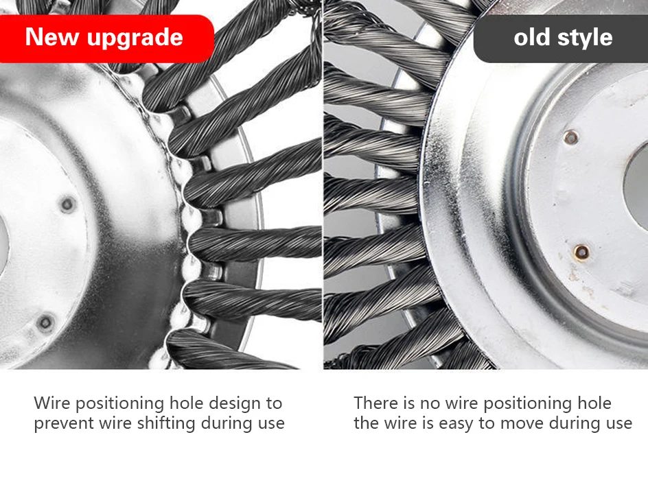 Острый и эффективный Щетка для сорняков имеет внутреннюю фиксированную пластину для обеспечения консистенции и безопасности. Более острый и эффективный, чем другие типы. Длительный срок службы и долговечность Щетка для сорняков изготовлена из проволоки из углеродистой стали, которая может нормально работать при ударе по камню и твердому блоку. Срок службы в 10 раз дольше, чем у других триммеров. Подходит и применяется Щетка для сорняков подходит для большинства моделей триммеров и подходит для инструментов для садовых столбов с прямым валом.