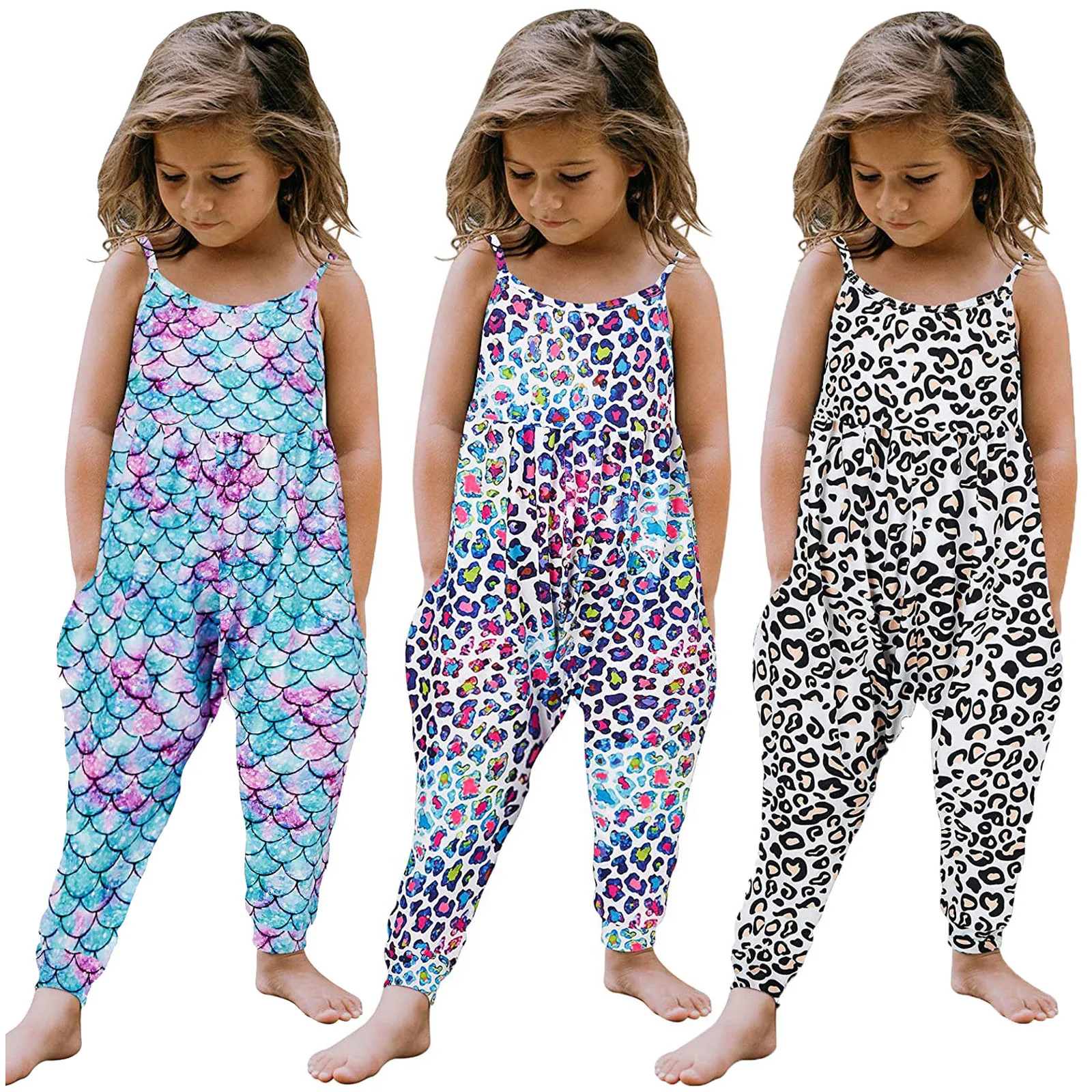 Детский комбинезон для маленьких девочек, цельный леопардовый комбинезон на лямках, летняя одежда