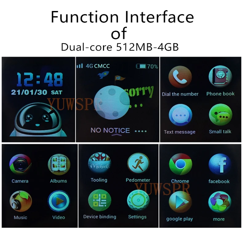 GPS + WIFI + LBS позиционирование, отслеживание, мониторинг, шагомер, телефонный звонок, видеозвонок, голосовой чат, телефонная книга, SMS, часы-будильник, SOS аварийный сигнал, будильник с низкой мощностью, удаленное отключение, игры, съемка фотографий и удаленное снятие фотографий, запись видео, воспроизведение музыки, калькулятор, запись, googleplay, посещение веб-сайта,... и т. Д.