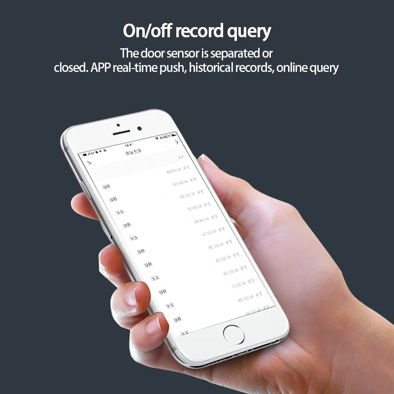 Мобильный телефон APP записывает статус дверного сенсорного выключателя для вас, проверяет записи в любое время и в любом месте, защищает безопасность вас и вашей семьи в течение всего дня, и записывает каждую деталь