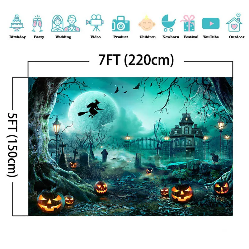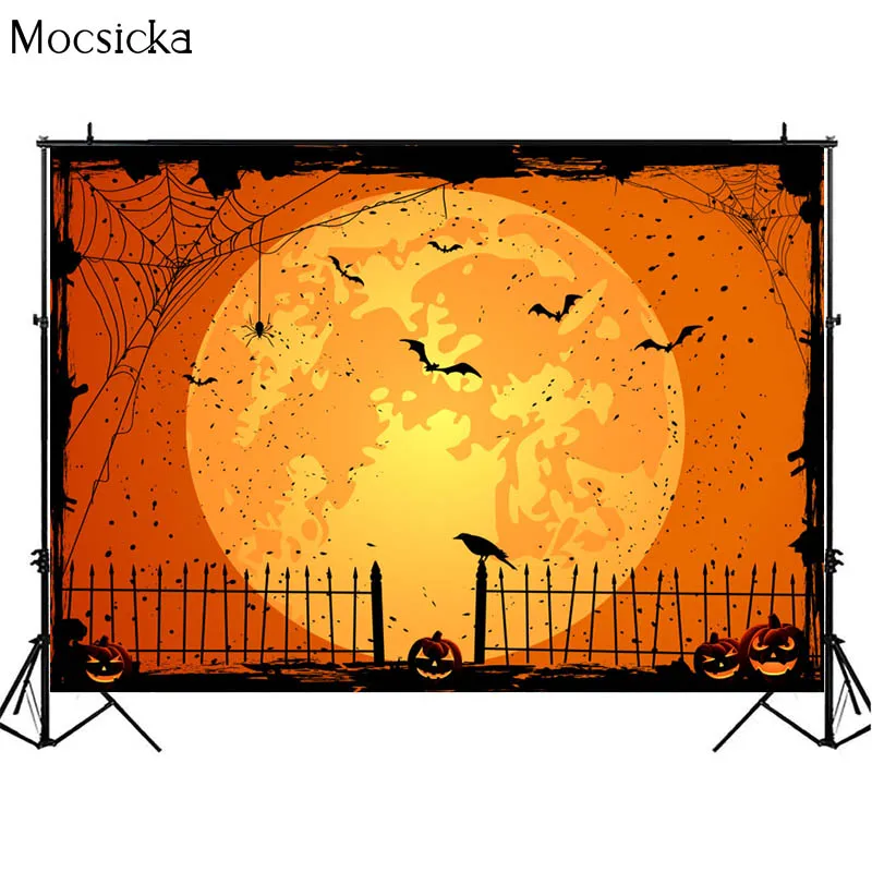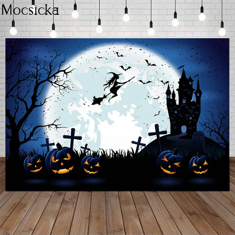 Mocsicka Хэллоуин фон замок ведьма лес ворона гравировка Луна Тыква ребенок день рождения фотография Фон Фотостудия