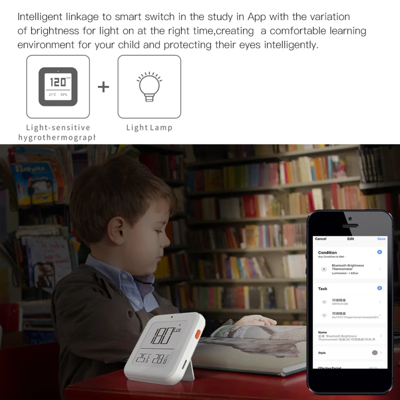 1. Умный термометр с яркостью определяет изменения в окружающем светильник, температуру и влажность в режиме реального времени; Активно сообщайте пользователю конец через приложение smart Life как встроенный протокол Bluetooth. Действительно хорошее дополнение для здоровья тела с детектором в реальном времени домашней яркости, температуры и влажности с высокой точностью.