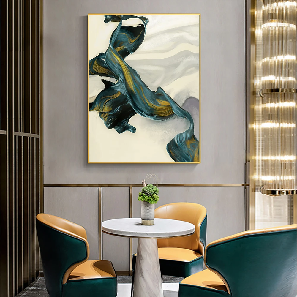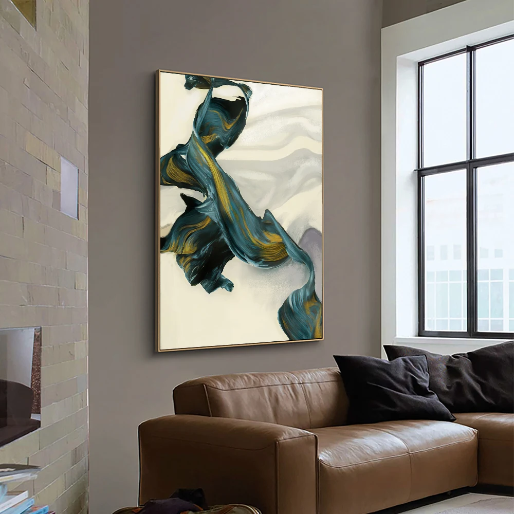 Абстрактная темно-зеленая с золотом картина на стену художественные картины новые современные плакаты и принты художественная работа для гостиной домашний декор