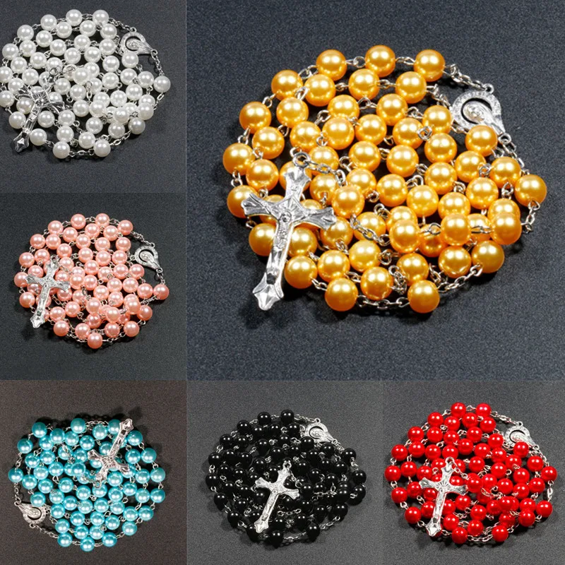 Крест Иисуса, длинный, 8 мм, ожерелья из искусственного жемчуга, 7 цветов, украшенный бисером
